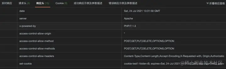 点击发送按钮后,如果有数据返回,则会显示返回数据,响应时间,响应码,Cookie等。\