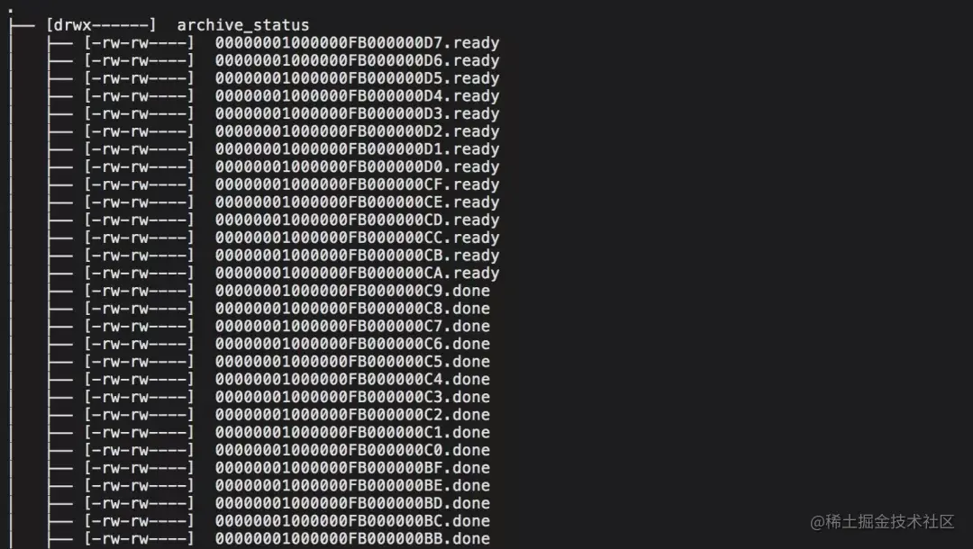 .done是同名wal段文件在archive_status目录内的标记文件,代表该wal段文件已被归档,可以被清理。数据库引擎默认通过archive_command命令对.ready文件进行归档,归档成功与否取决于archive_command命令返回true还是false,当archive_command返回true时,代表与.ready文件同名的wal段文件已被归档,引擎再将该文件的扩展名重命名为.done,等待数据库引擎在下一次的checkpoint时进一步清理原wal段文件。