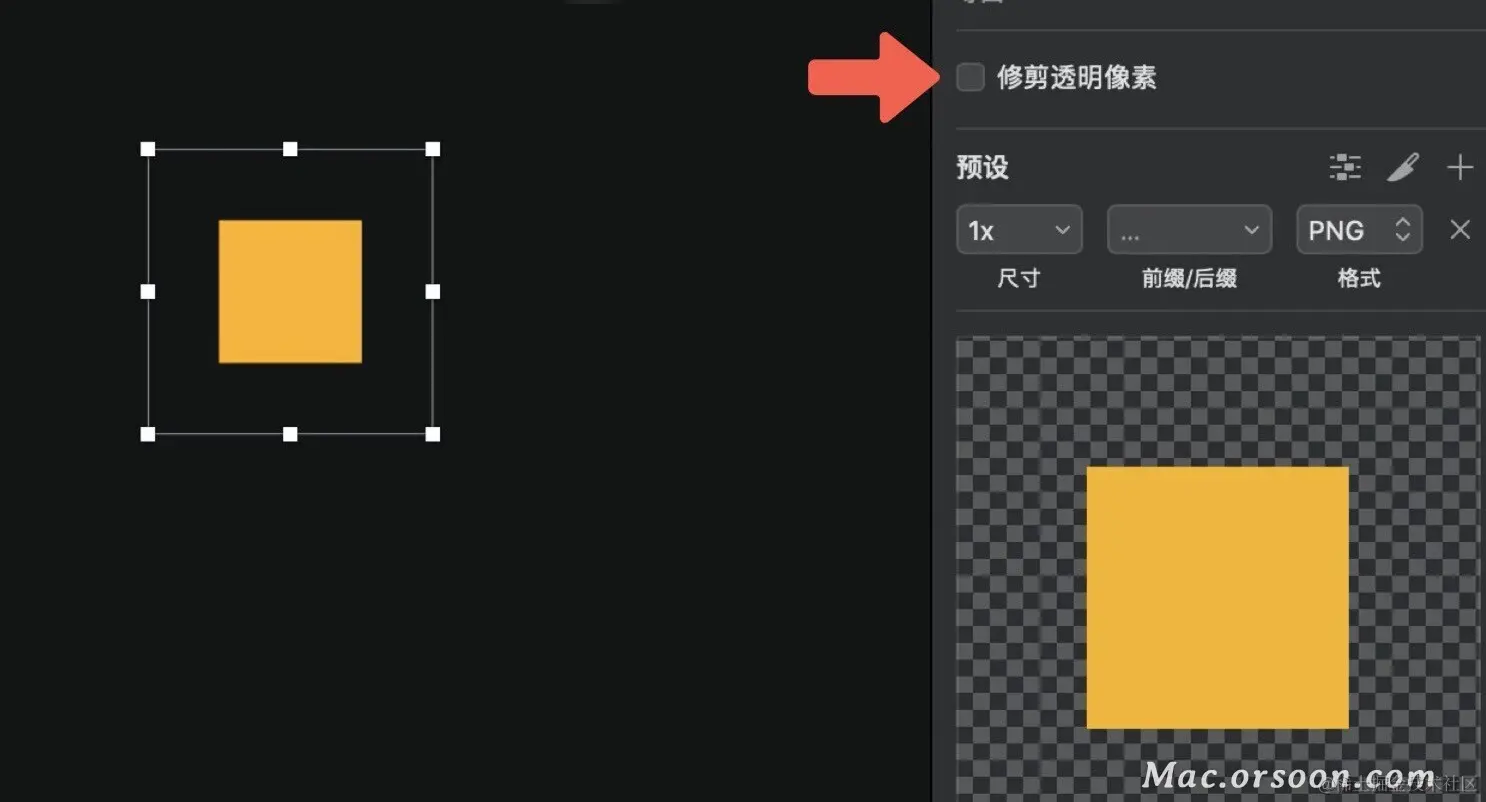 - 取消勾选“导出 > 修剪透明像素”选项。
