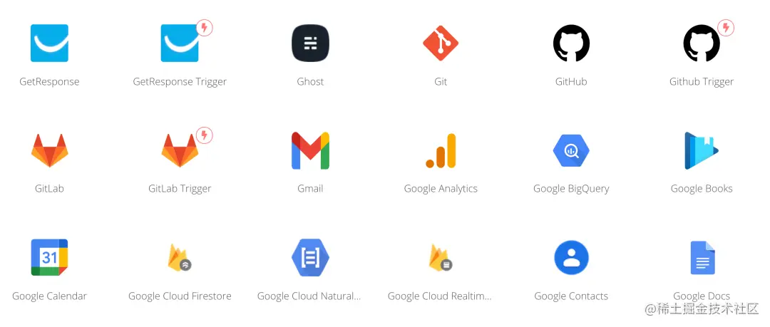 n8n 是国外的工作流自动化工具,集成的应用程序都是国外的产品,比如 Facebook、Airtable、Google doc 等等。显然,这款开源工具在国内没有使用场景,毕竟大部分国内的用户都是用本土的互联网产品。