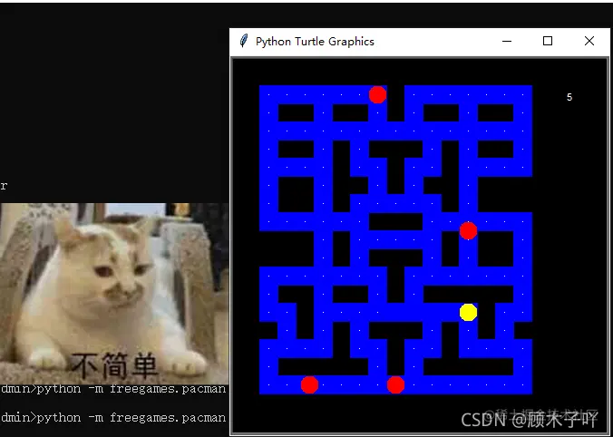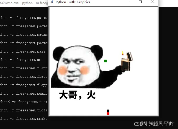 开始启动游戏:python -m freegames.+游戏列表里面的任何一种游戏名字就ok。