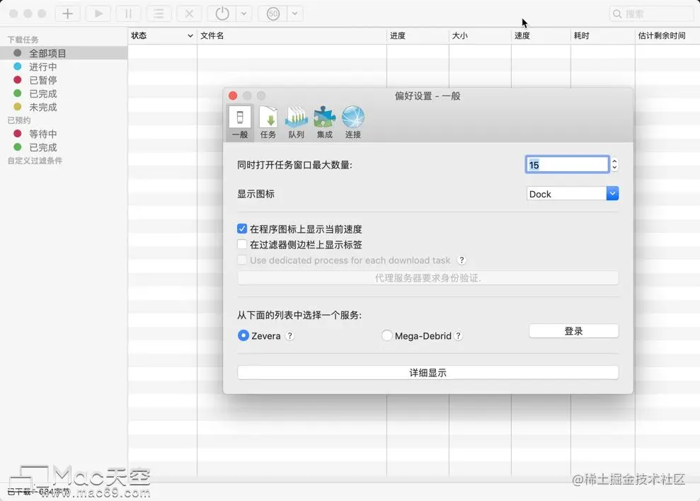 | 4、使用AppScript或Automator的中的应用程序的强大功能。 | 5、使您的下载仅在指定的时间窗口内运行。 | 6、使用您的Zevera帐户从超过一百种文件托管服务下载。 |