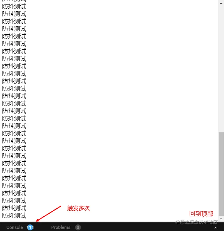 可以看到只要滚一下,就会触发多次,这完全是在消耗资源,那么可以用防抖来处理