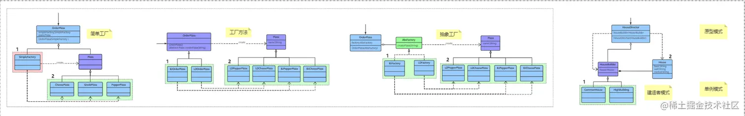 - 单例模式,工厂模式, 抽象工厂模式, 建造者模式, 原型模式