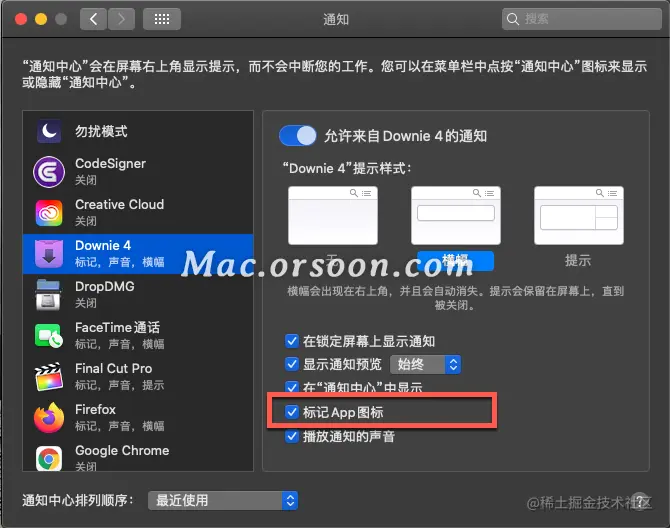 3.您可以对所有其他使用这些标记打扰您的应用程序重复此过程。取消选中 标记App图标 可消除烦人的红色通知标记,同时仍允许应用程序发送通知。