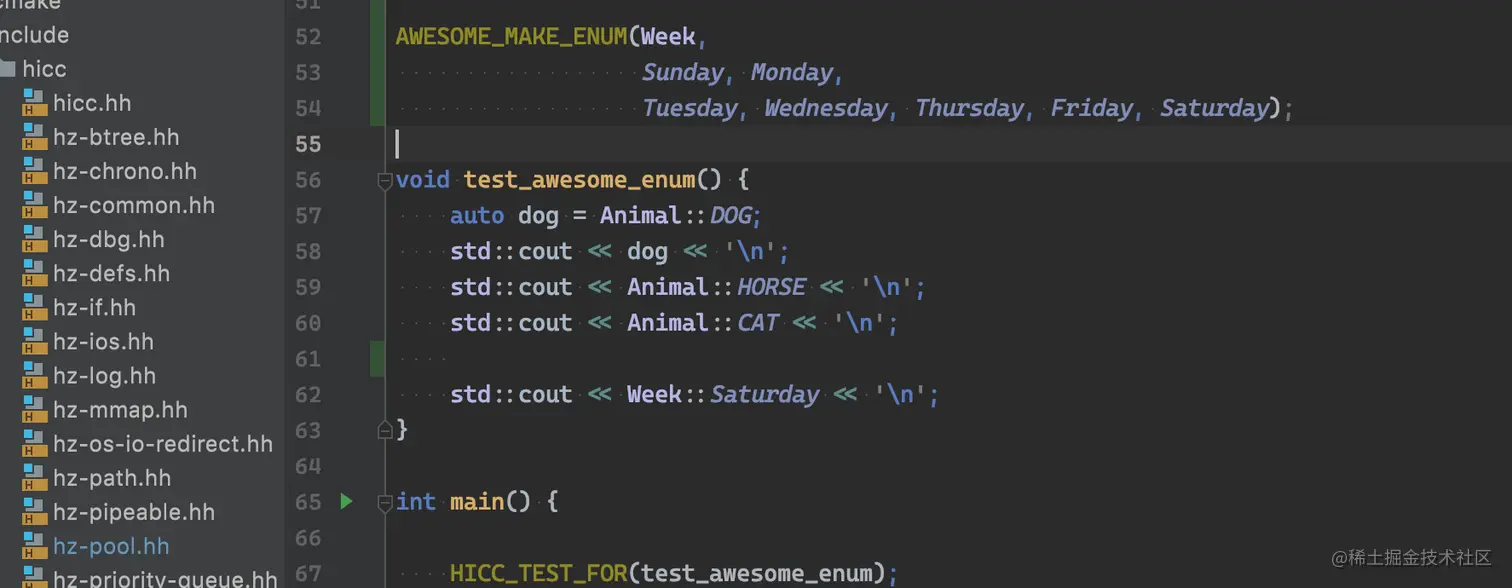 如果你不想集成 magic_enum 那么全面的能力,而是仅仅只需要一个简单的字面量映射的话,我们在 hicc-cxx/cmdr-cxx 中提供了一个宏 AWESOME_MAKE_ENUM(基于 Debdatta Basu 提供的版本),用它的话你可以以很少量的代价获得枚举量的字面量表示。