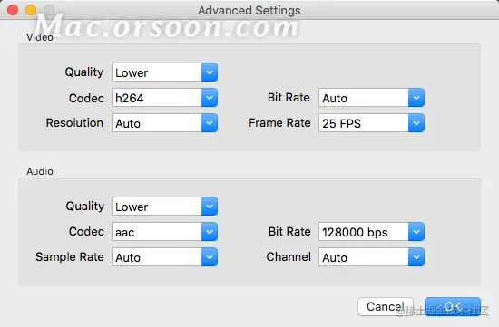 对于有经验的用户,您可以在“高级设置”窗口中手动更改视频编解码器、比特率、帧率、音频编解码器等编码参数。要打开它,请单击您选择的输出格式旁边的“齿轮”按钮。