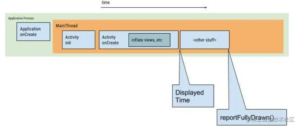 activity 的 onResume 方法完成后才开始首帧的绘制。所以这些方法中的耗时操作我们是要极力避免的。 并且,通常情况下,一个应用的主页的数据是需要进行网络请求的,那么用户启动应用是希望快速进入主页以及看到主页数据,这也是我们计算启动结束时间的一个依据。