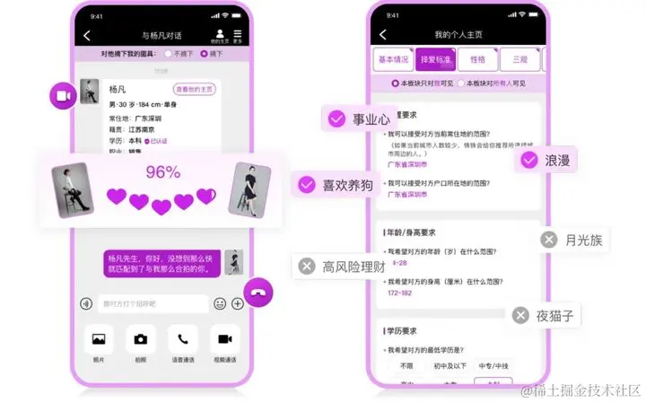 为了促进单身男女的高效匹配,铢铢App基于对真实信息的了解,综合男女双方的软硬性条件、择爱标准、性格、三观等多维度数据,以个性化定制+大数据精准筛选的方式,提高用户之间匹配的准确度和成功率。