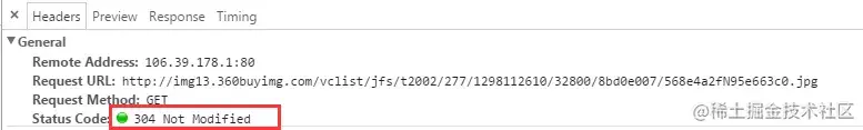 查看单个请求的Response Header,也能看到304的状态码和Not Modified的字符串,只要看到这个就可说明这个资源是命中了协商缓存,然后从客户端缓存中加载的,而不是服务器最新的资源