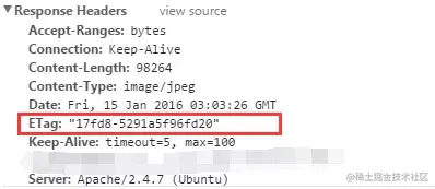 3、服务器再次收到资源请求时,根据浏览器传过来If-None-Match和然后再根据资源生成一个新的ETag,如果这两个值相同就说明资源没有变化,否则就是有变化;如果没有变化则返回304 Not Modified,但是不会返回资源内容;如果有变化,就正常返回资源内容。与Last-Modified不一样的是,当服务器返回304 Not Modified的响应时,由于ETag重新生成过,response header中还会把这个ETag返回,即使这个ETag跟之前的没有变化