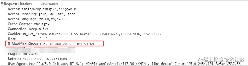 2、浏览器再次跟服务器请求这个资源时,在request的header上加上If-Modified-Since的header,这个header的值就是上一次请求时返回的Last-Modified的值