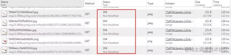 当浏览器对某个资源的请求没有命中强缓存,就会发一个请求到服务器,验证协商缓存是否命中,如果协商缓存命中,请求响应返回的http状态为304并且会显示一个Not Modified的字符串,比如你打开京东的首页,按f12打开开发者工具,再按f5刷新页面,查看network,可以看到有不少请求就是命中了协商缓存的