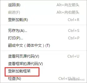 5、如果资源引用的页面,被嵌入到了一个iframe里面,可以在iframe的区域右键单击重新加载该页面,以chrome为例