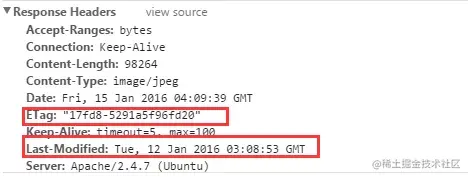 京东页面的资源请求,返回的repsones header就只有Last-Modified,没有ETag: