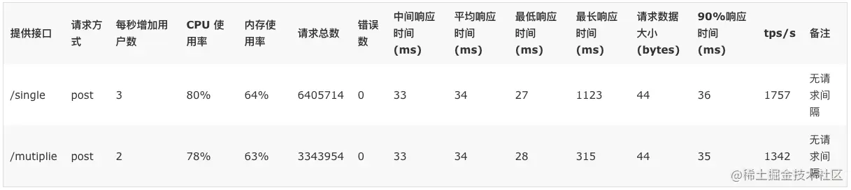 文章引用的数据,仅代表特定压测环境下的服务表现