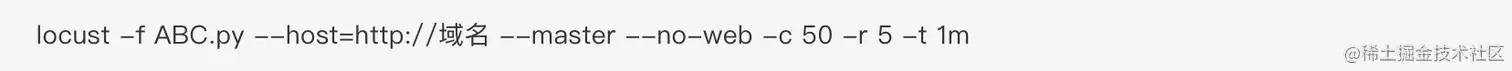 写好需要运行的locust文件之后,我们需要先利用命令“locust -f xxxx.py --master”创建一个master,这个master不参与创建并发用户的工作,它主要是进行监听以及收集统计数据.