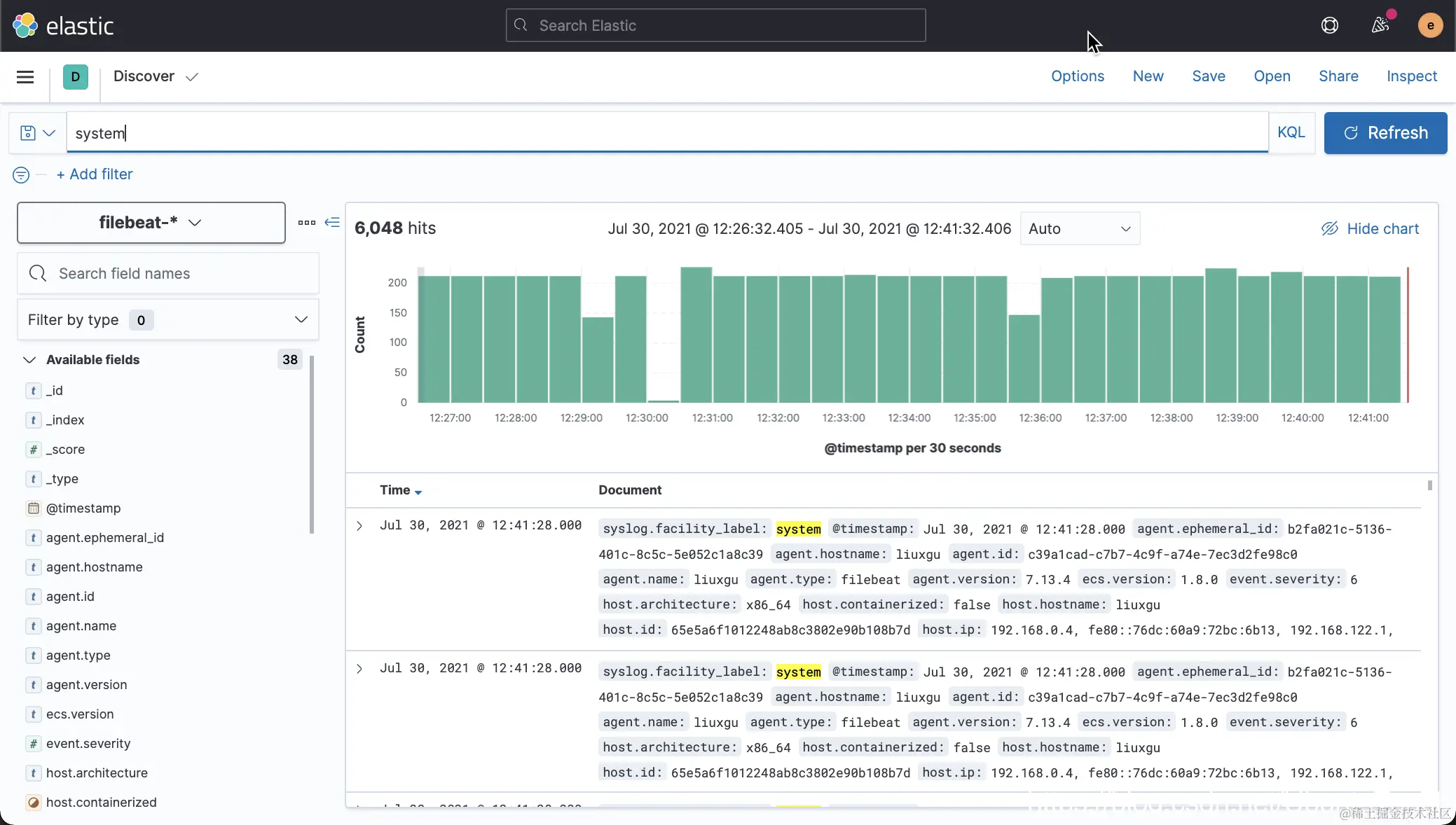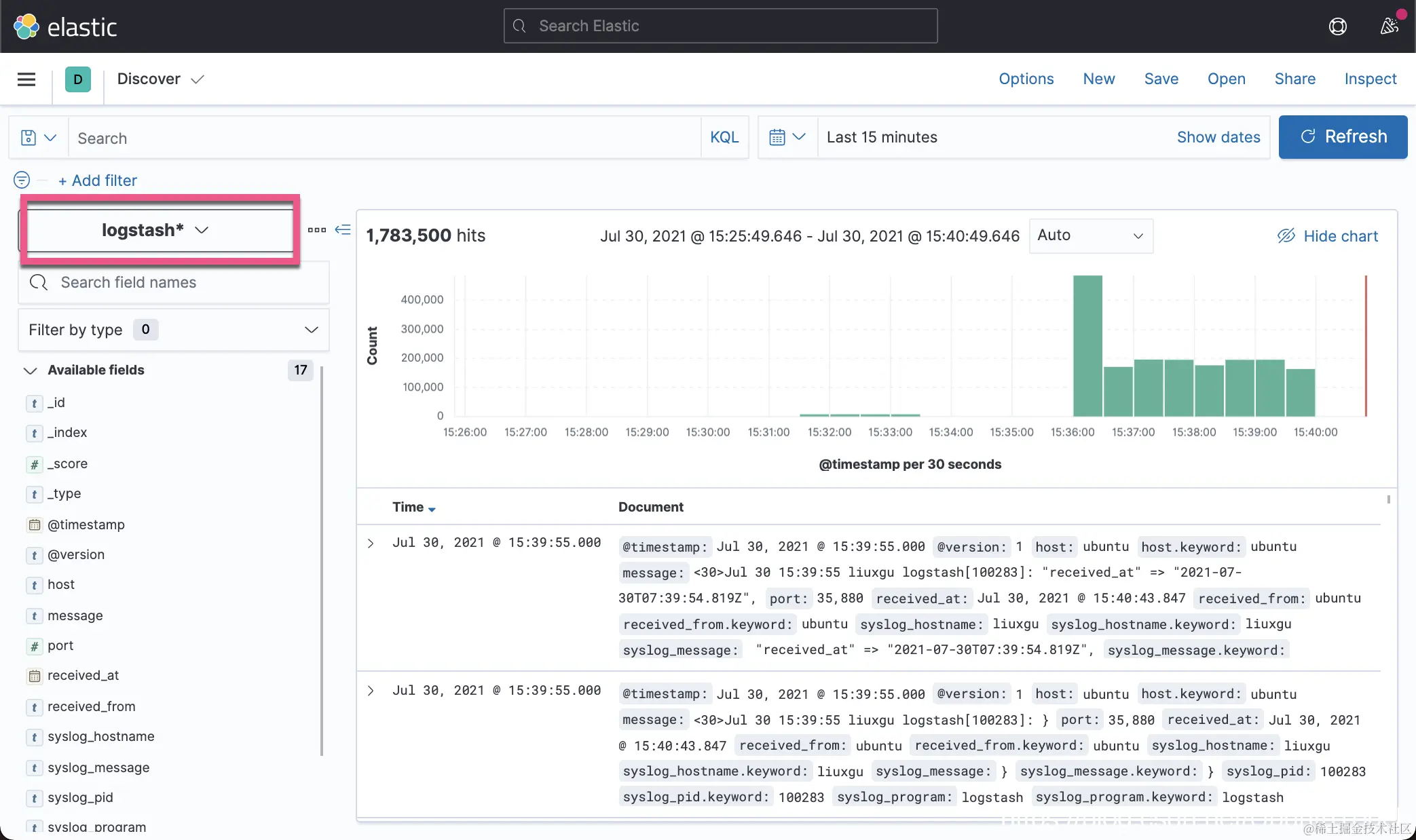 我详述了如何使用 Filebeat 中的 system 模块来为 syslog 导入到 Elasticsearch。这是目前为止最为快捷的方法。在实际的使用中,我们也可以使用其它来导入 syslog。这里的方法是: