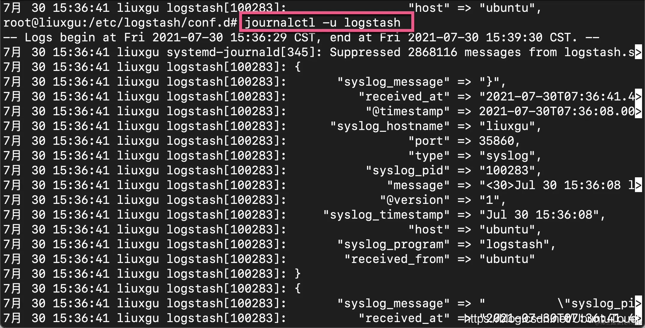 配置完毕后,我们需要重新启动 Logstash 这个服务。