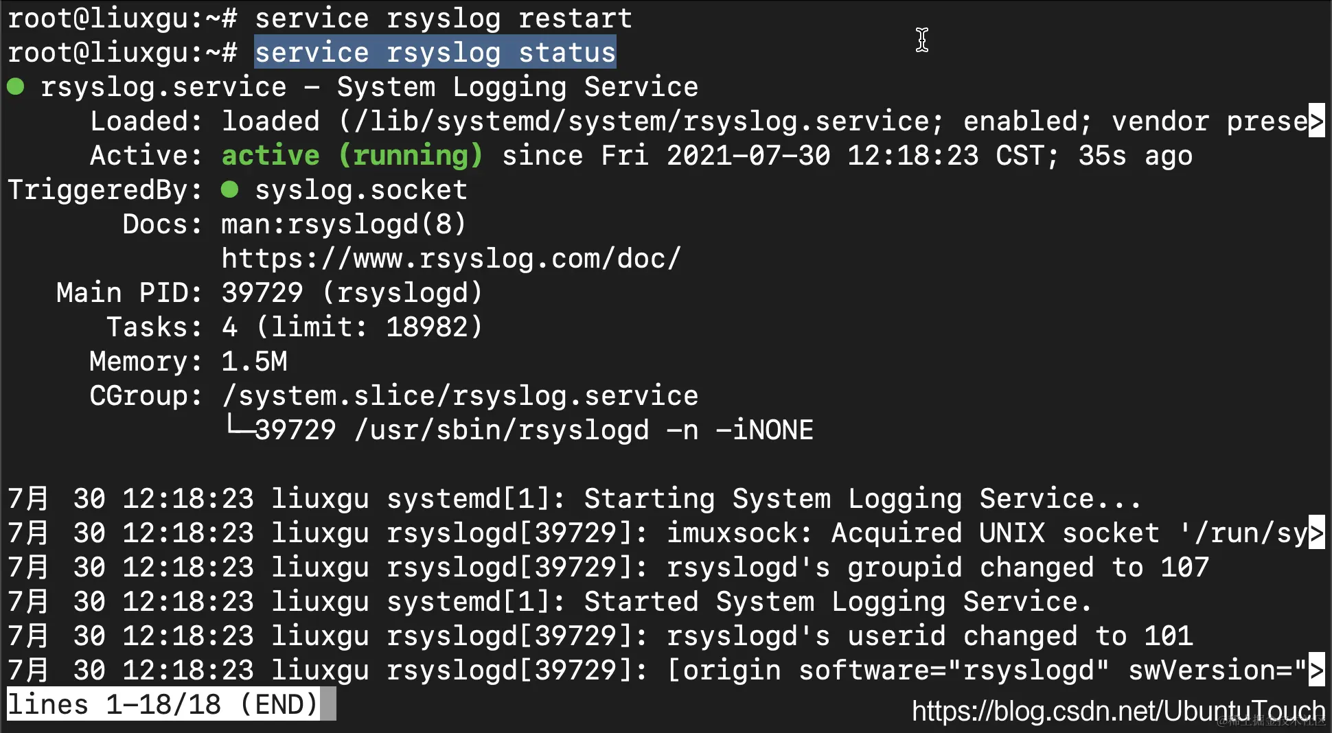 等我们修改完上面的 rsyslog.conf 后,我们可以使用如下的命令来重新启动该服务: