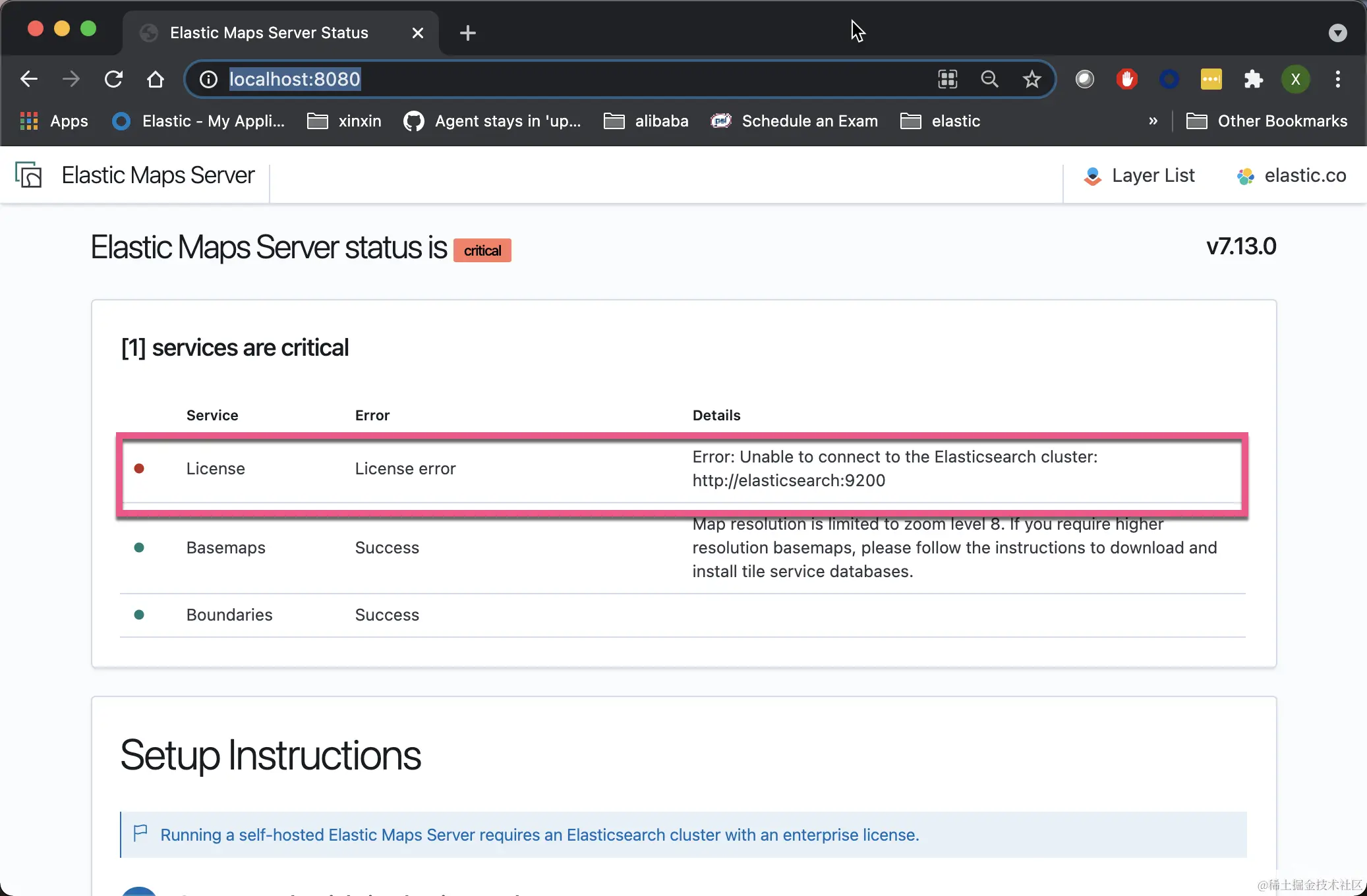 在上面,我们会发现一些错误。我们需要按照下面的 Setup Instructions。我们向下滚动: