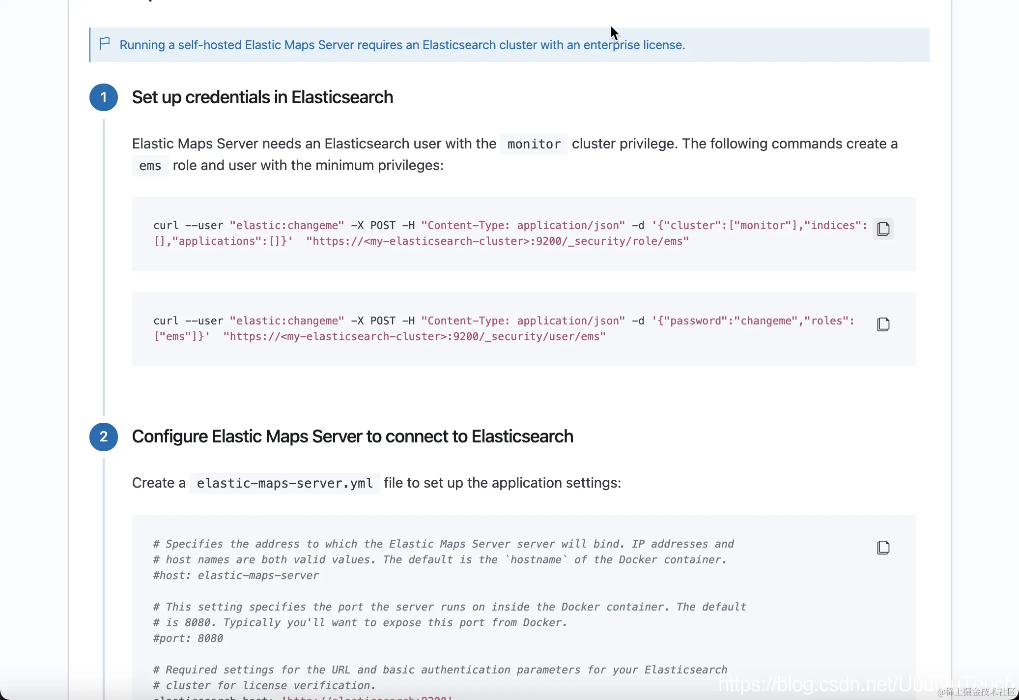 接下来,我们来配置 Elastic Maps Server 连接到 Elasticsearch。创建一个叫做 elastic-maps-server.yml 的文件: