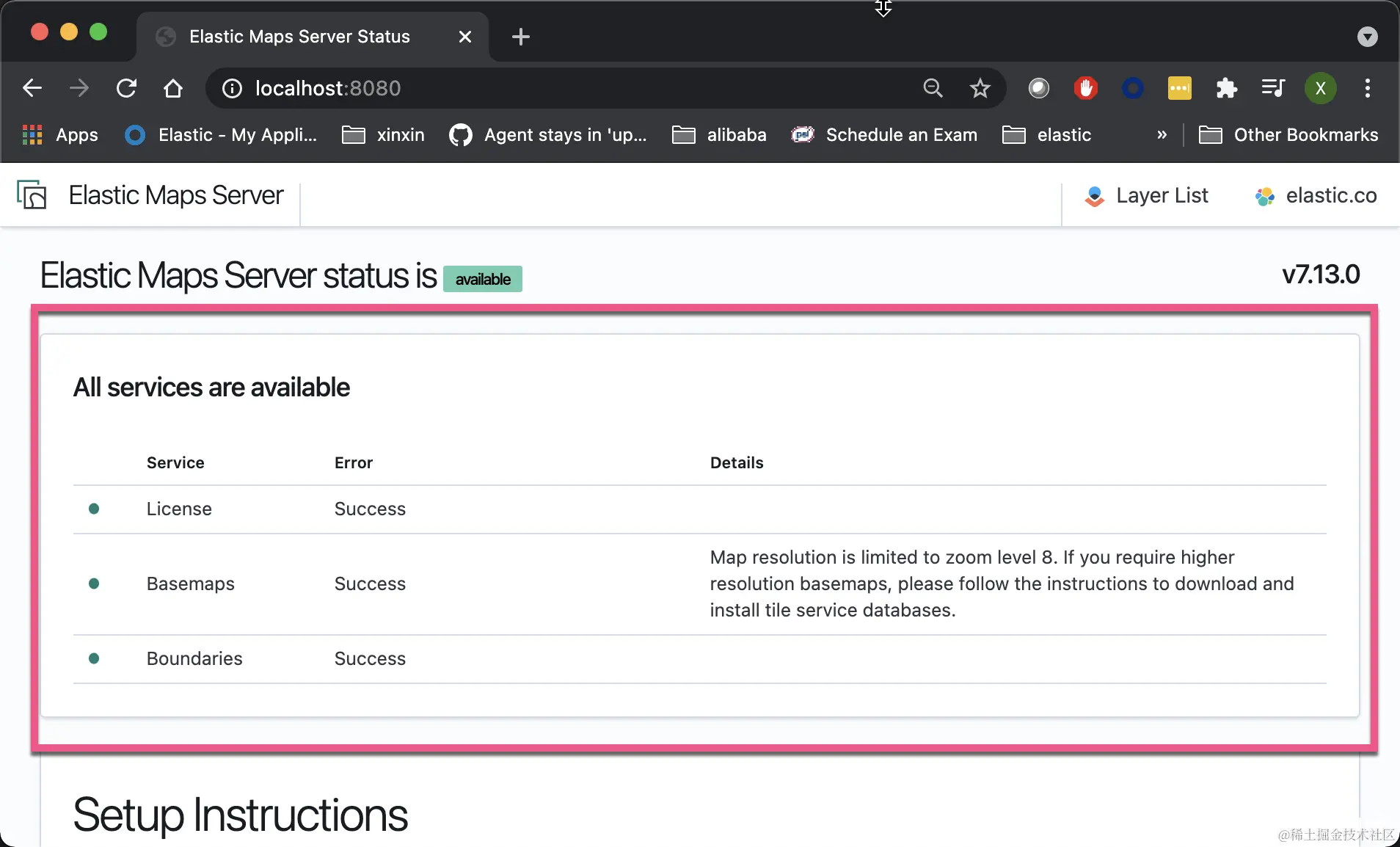 启动 Elastic Maps Server 并公开默认端口8080: