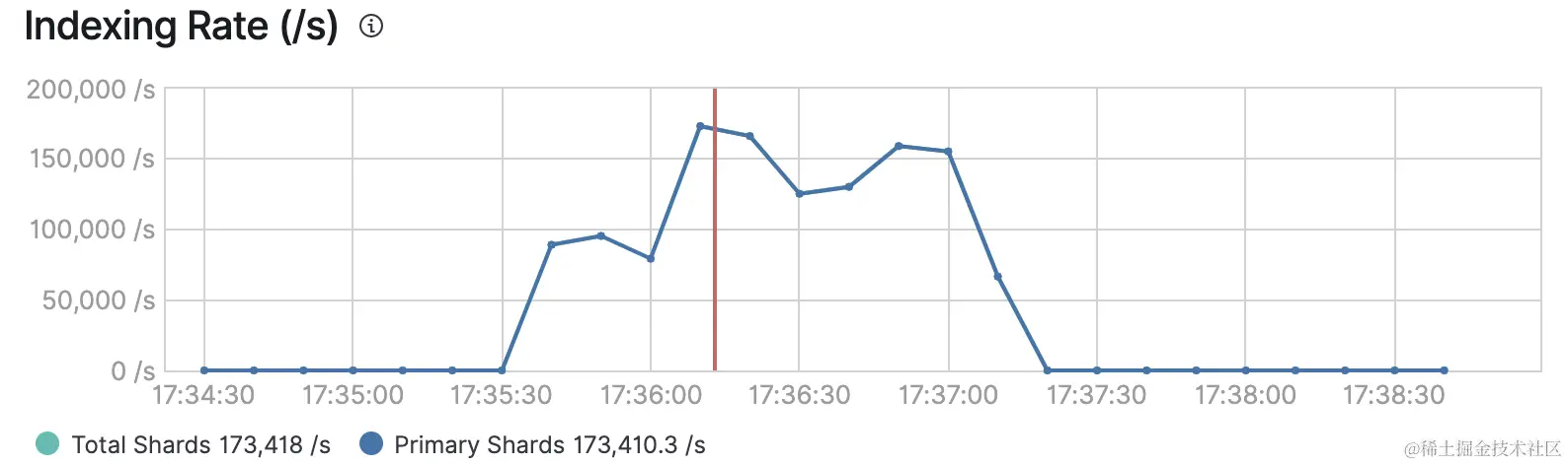 - 索引吞吐量为 173,000,小于先前提到的 220,000。