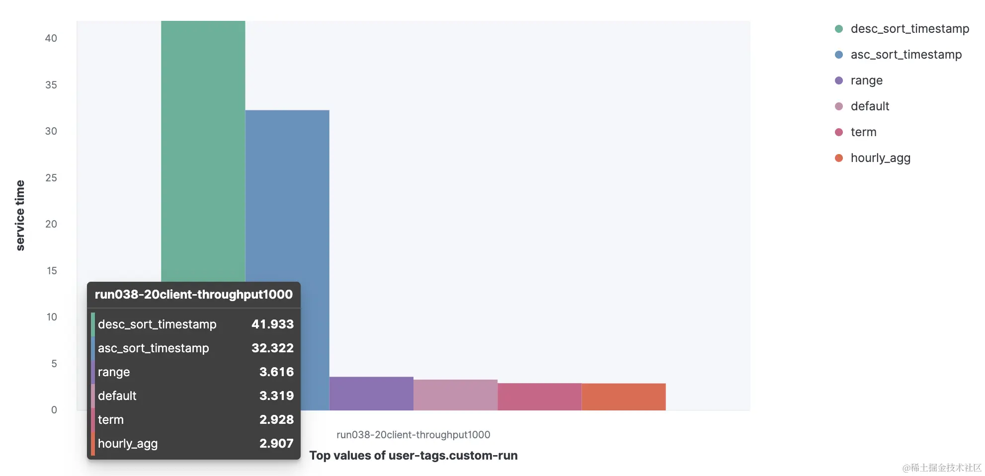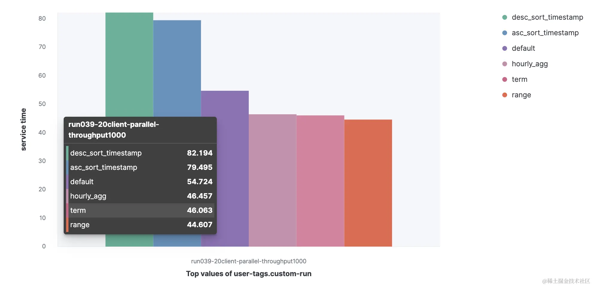 我们可以观察到,desc_sort_timestamp and desc_sort_timestamp 查询的服务时间更长。
