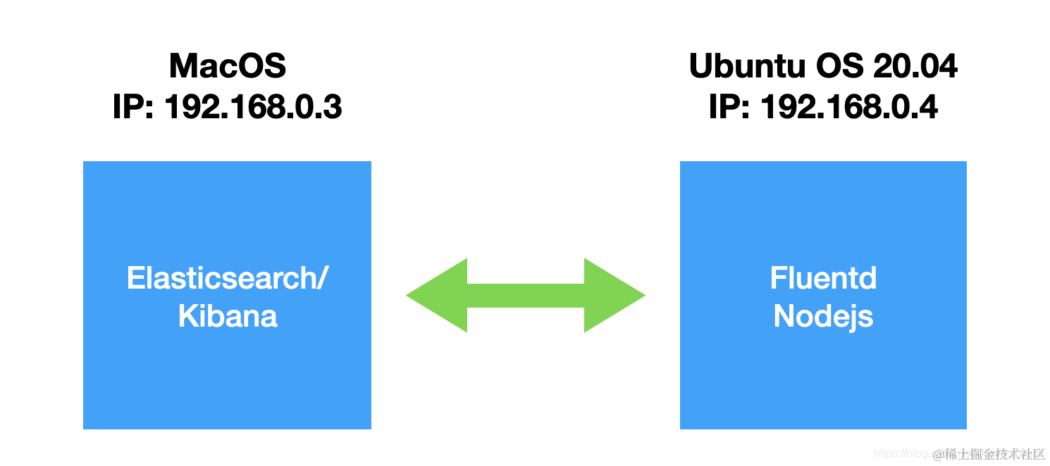 我们在 Ubuntu OS 上部署 Fluentd。我们使用一个 nodejs 的应用程序来生产 JSON 格式的应用日志,并让 Fluentd 来收集并发送至 Elasticsearch。