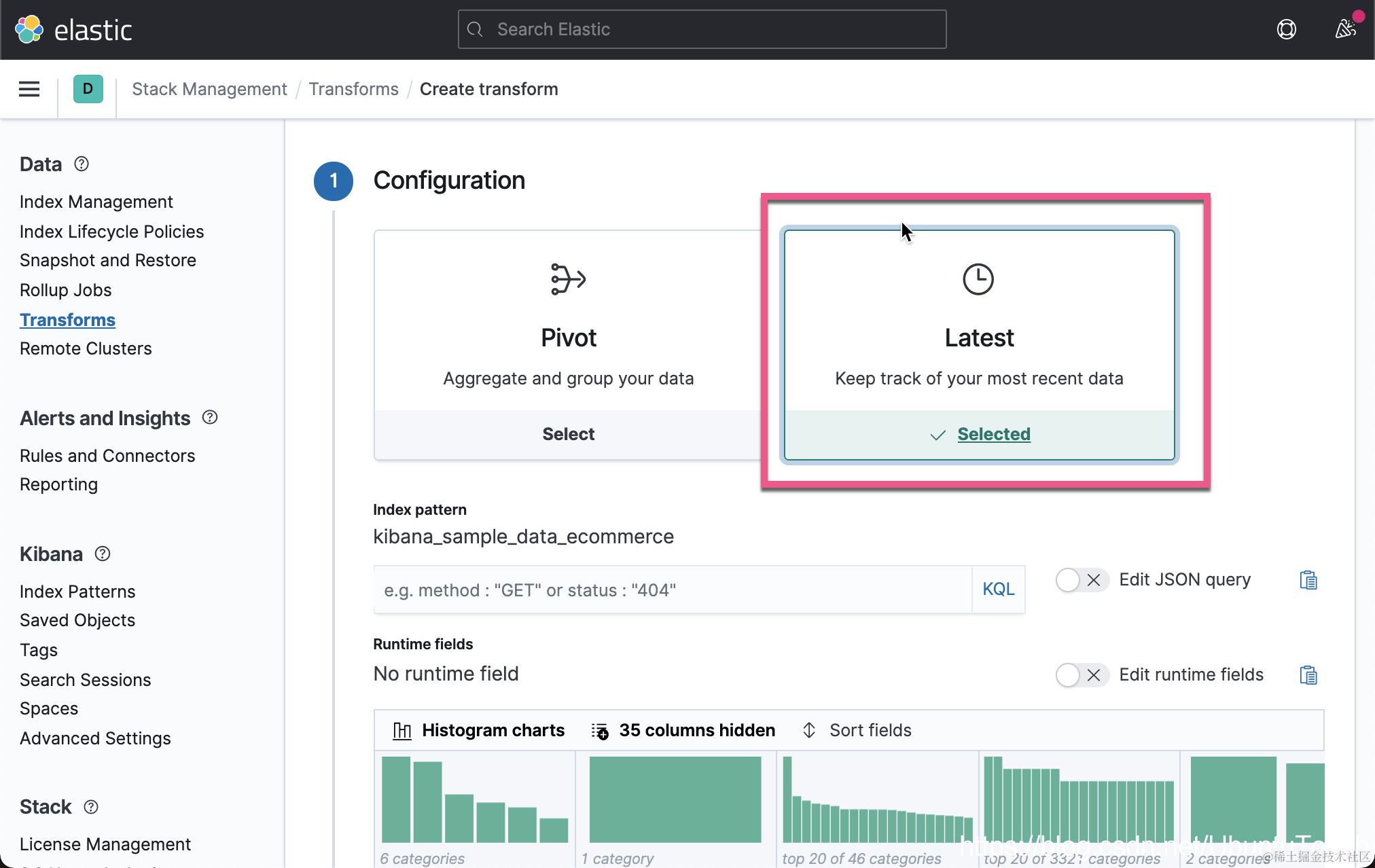 执行此步骤的基本原理是,与数据透视(pivot)不同,latest 不会自动推断目标索引映射。 因此,如果没有预先存在的目标索引(或索引模板),将使用动态索引映射,这可能不是你想要的。