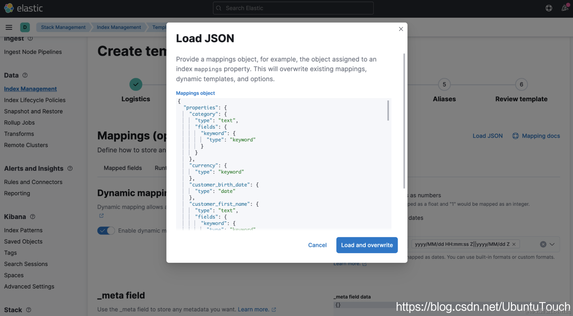 1)在 Stack Management > Index Management 页面中确定源索引的映射,并将完整的映射 JSON 复制到剪贴板。