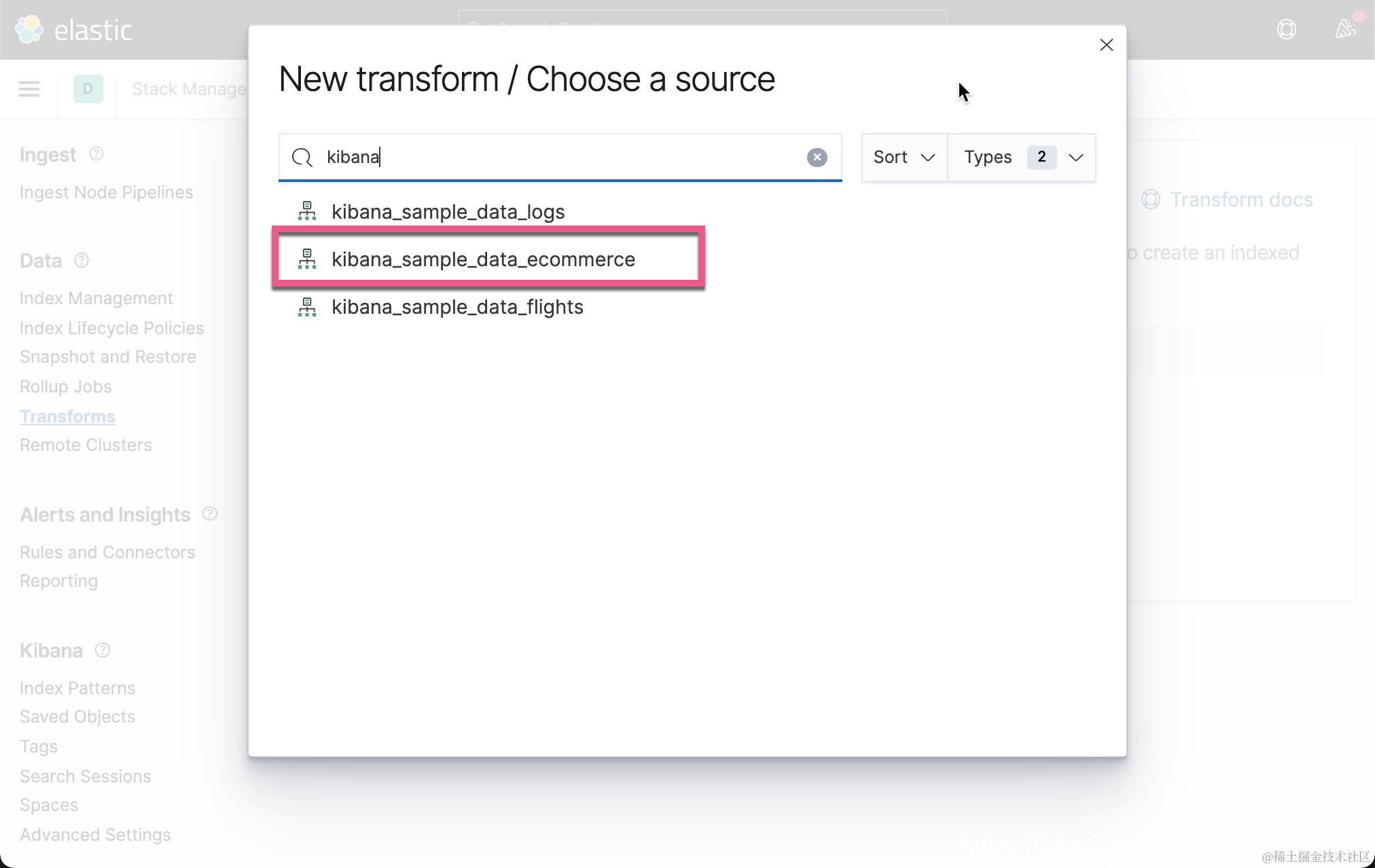 在本博客中,我们将使用 Kibana 的 “Sample eCommerce orders” 数据集。