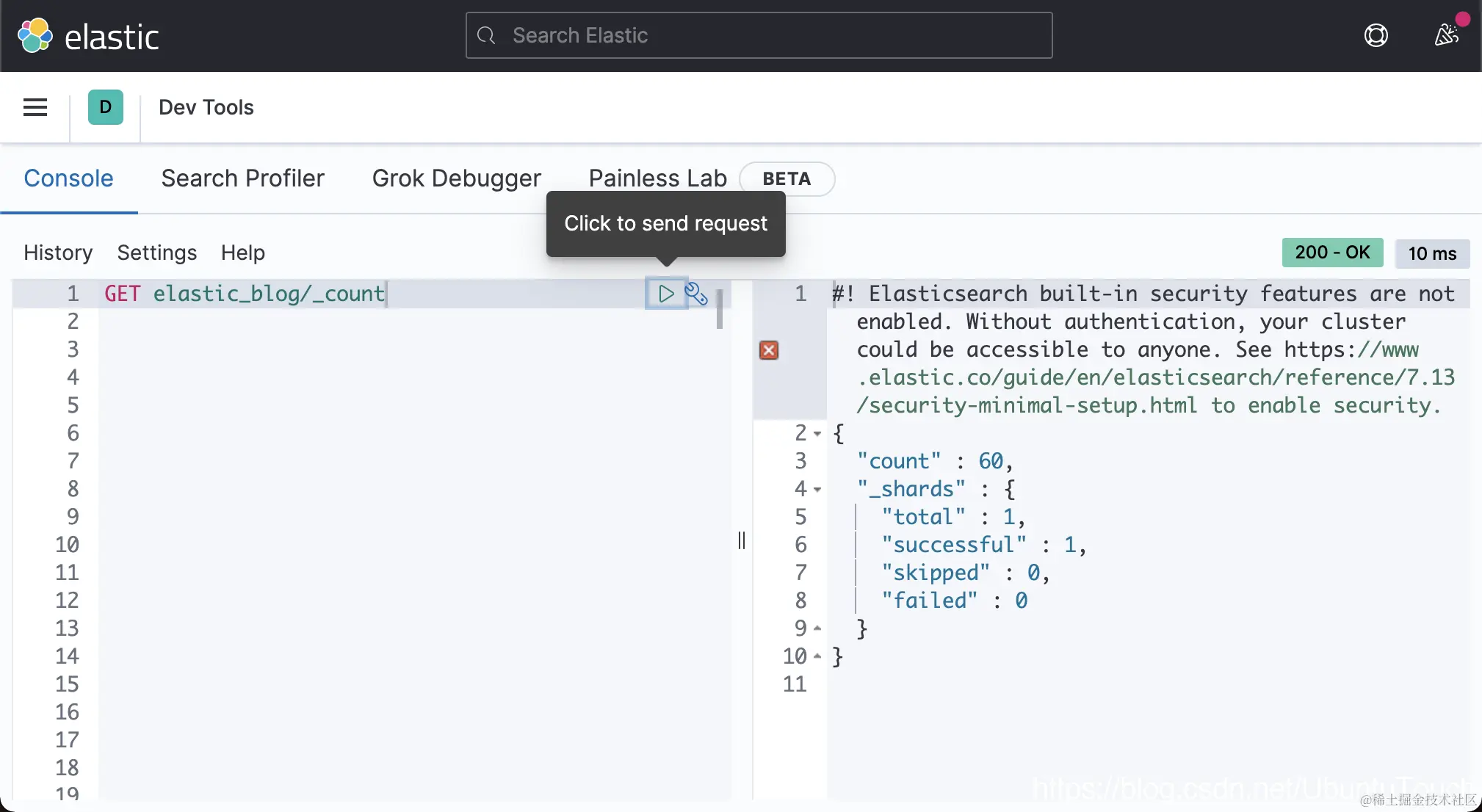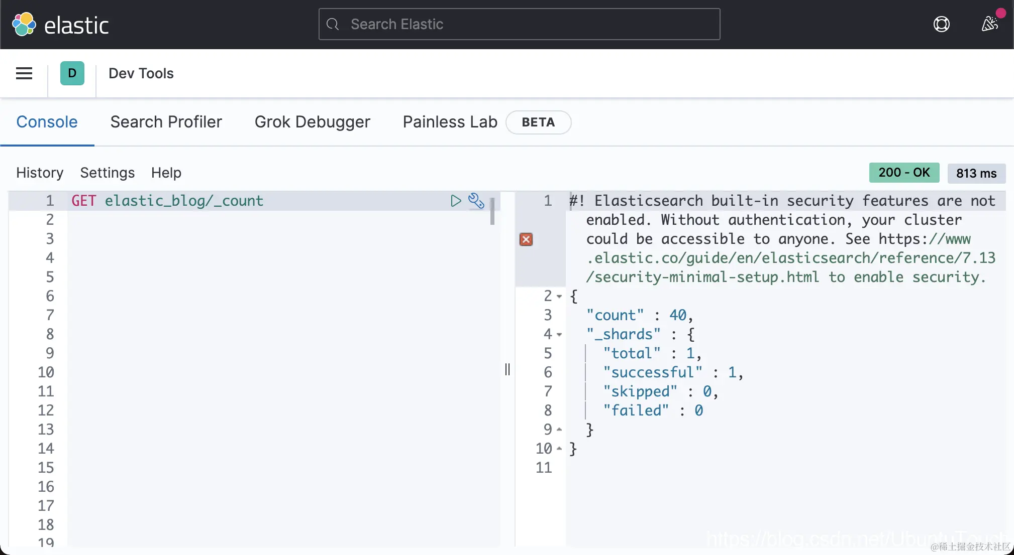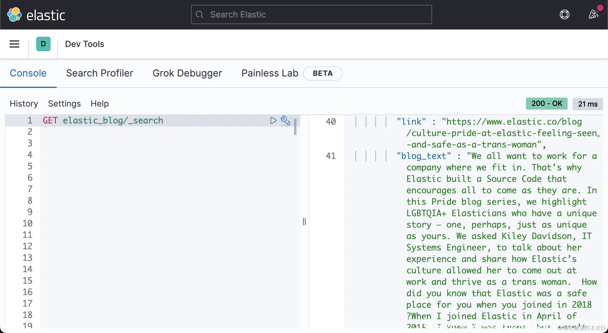 我们可到 Elasticsearch 中查找索引 elastic_blog: