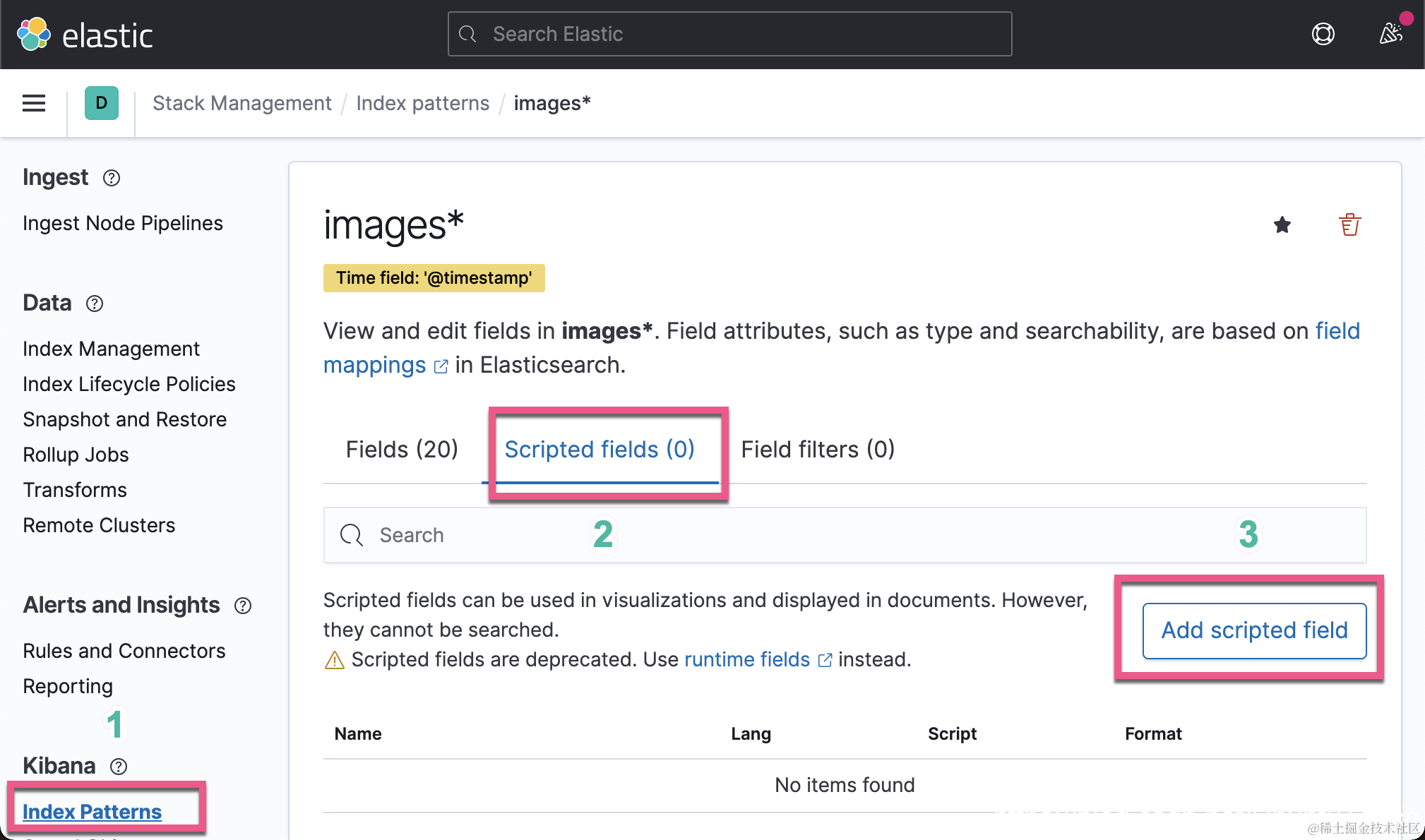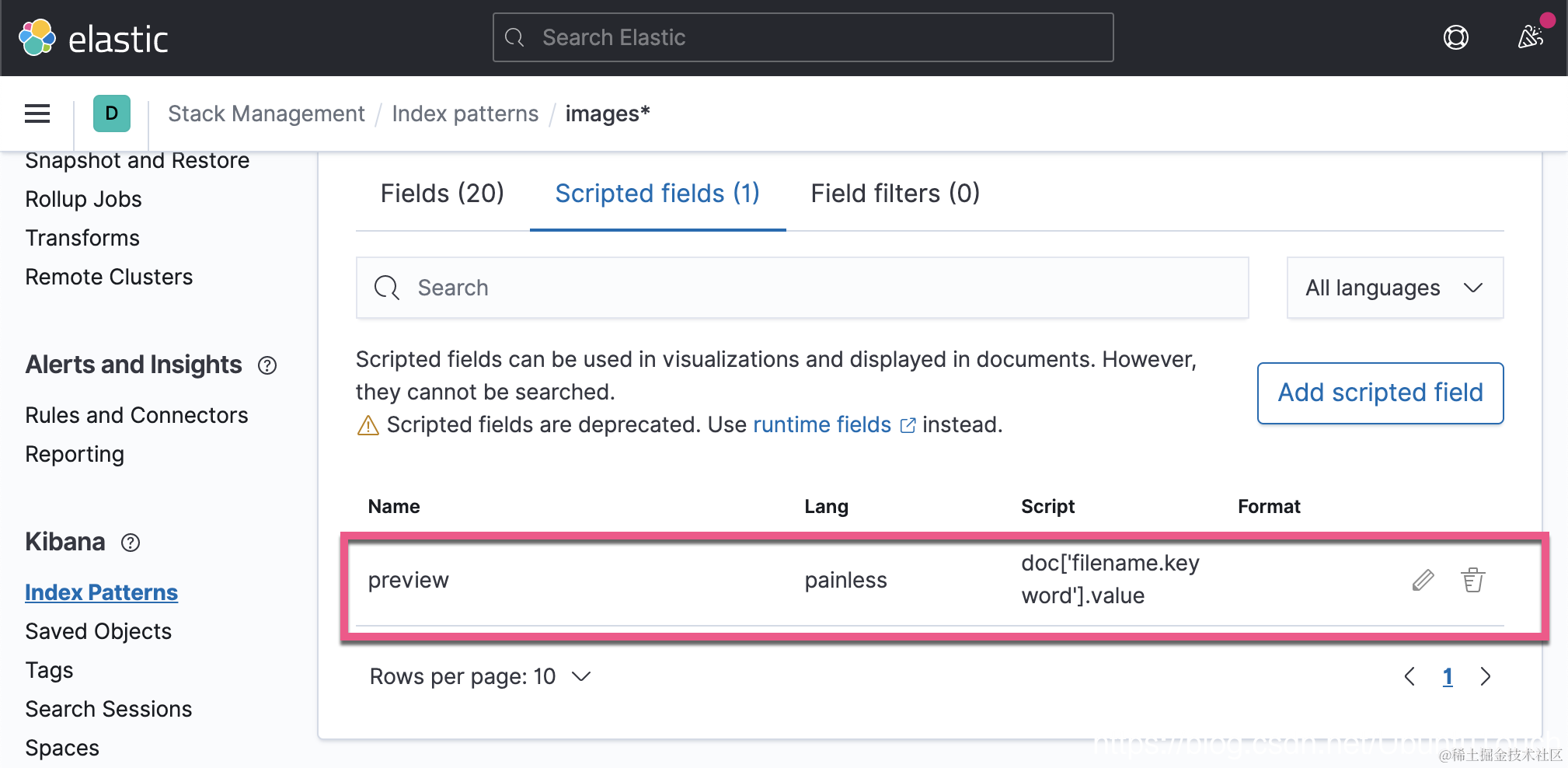 在上面,我们为 images 索引创建一个 Scripted field: