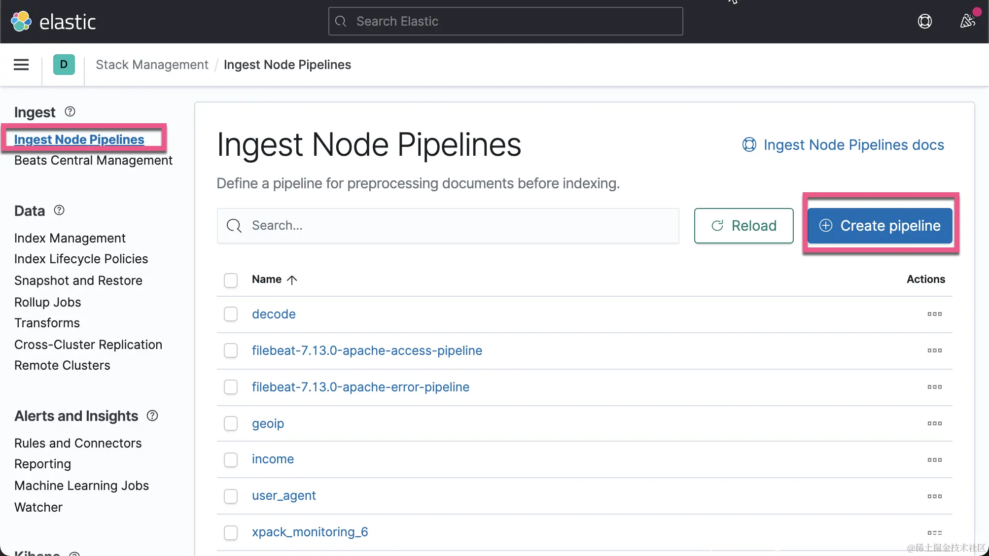 通过 Kibana 界面来完成 Pipeline