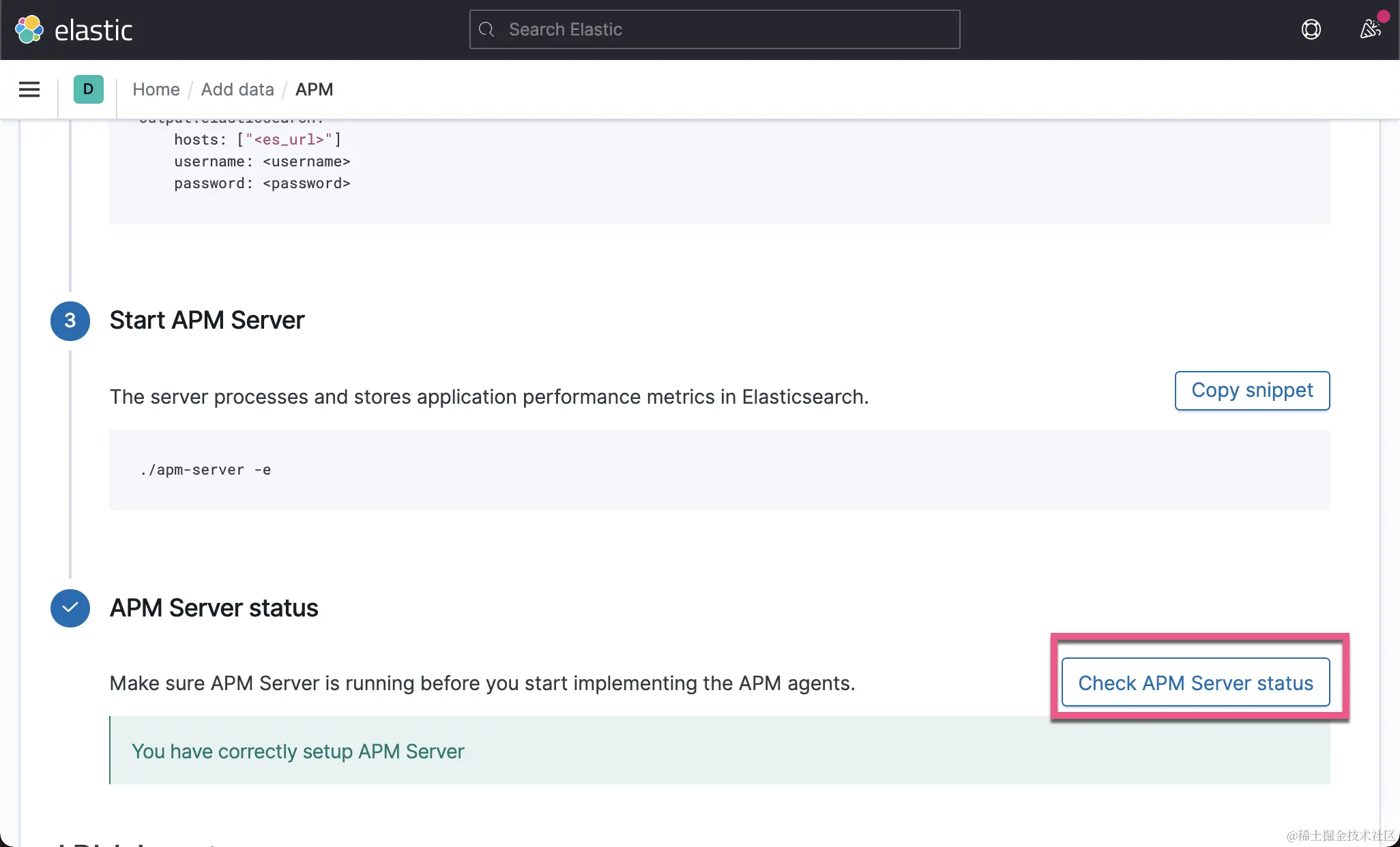 这样我们就完成了 Elasticsearch,Kibana 及 APM Server 的安装: