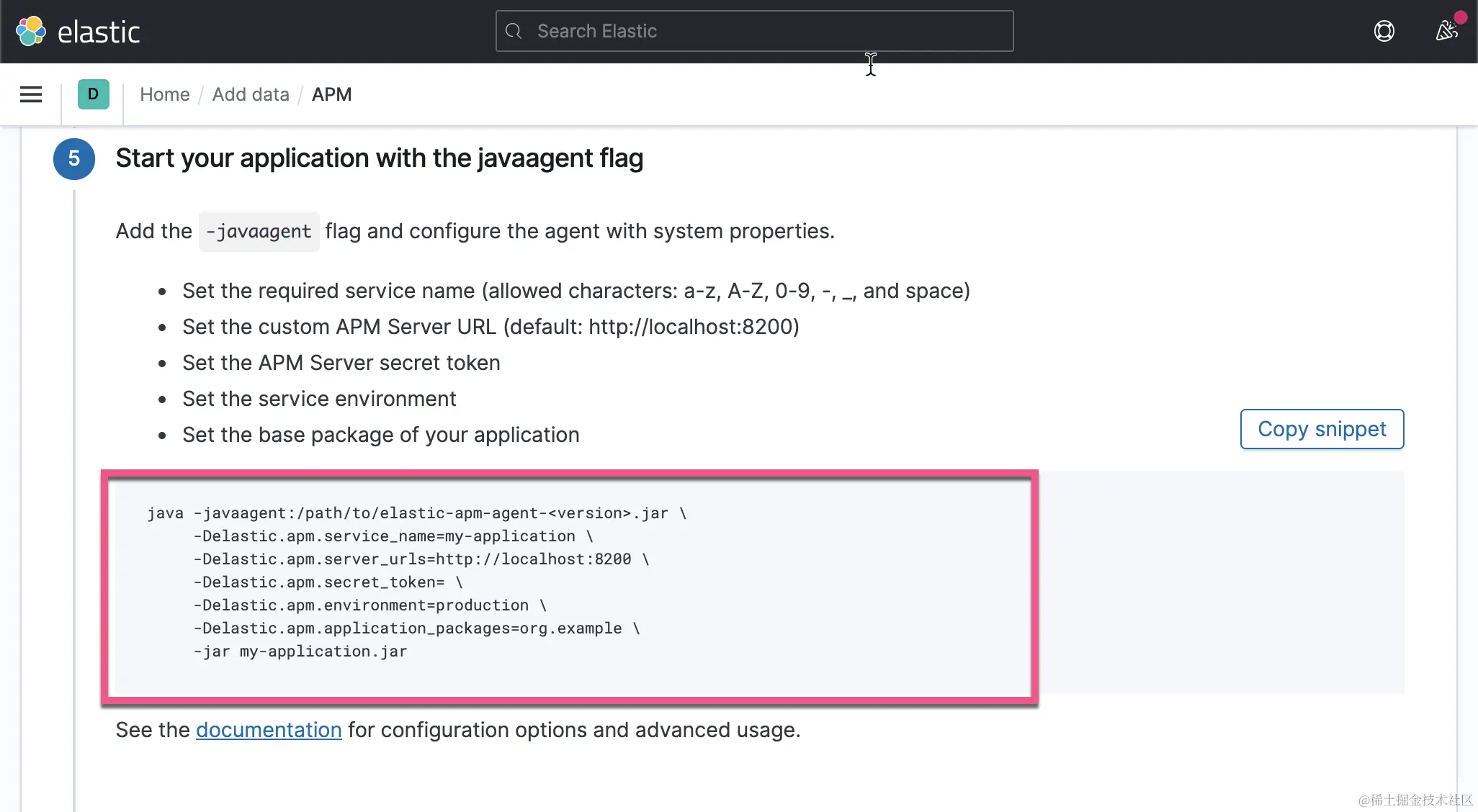 上面启动 Java 应用的方式,我们称之为手动配置。我们其实可以通过一种叫做自动配置的方式来对 Java 应用进行监控。详细描述可以参阅文章 “设置 Elastic APM Java 代理 - 自动设置”。