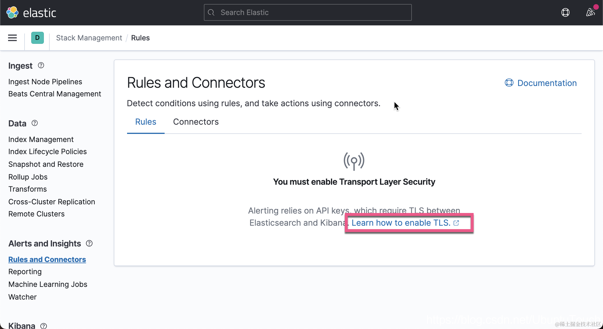 警报(alerting)允许你定义规则以检测不同 Kibana 应用程序中的复杂条件并在满足这些条件时触发操作。 警报与可观察性、安全性、地图和机器学习集成,可以从管理 UI 集中管理,并提供一组内置连接器和规则(称为堆栈规则)供你使用。