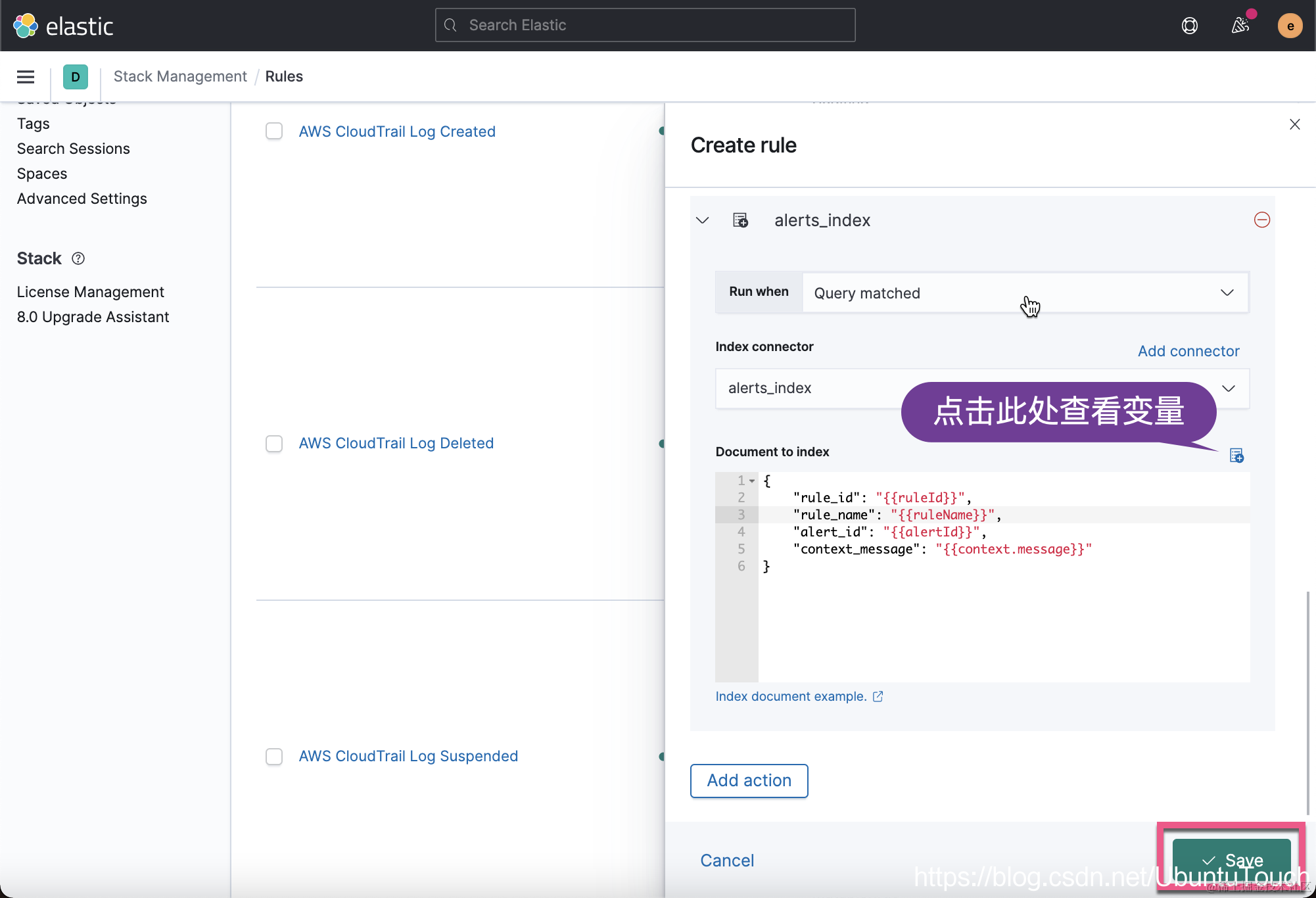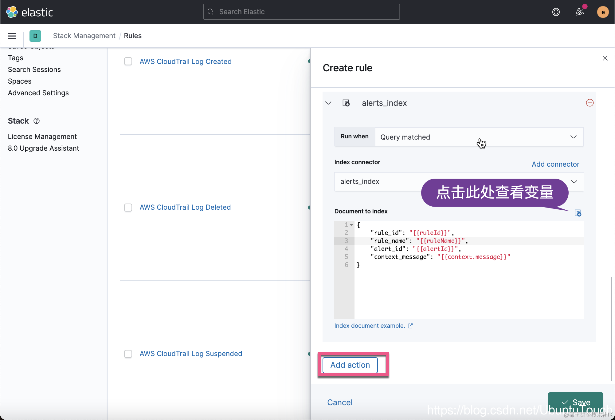 Kibana 调用操作,将它们发送到第三方集成,如电子邮件服务。
