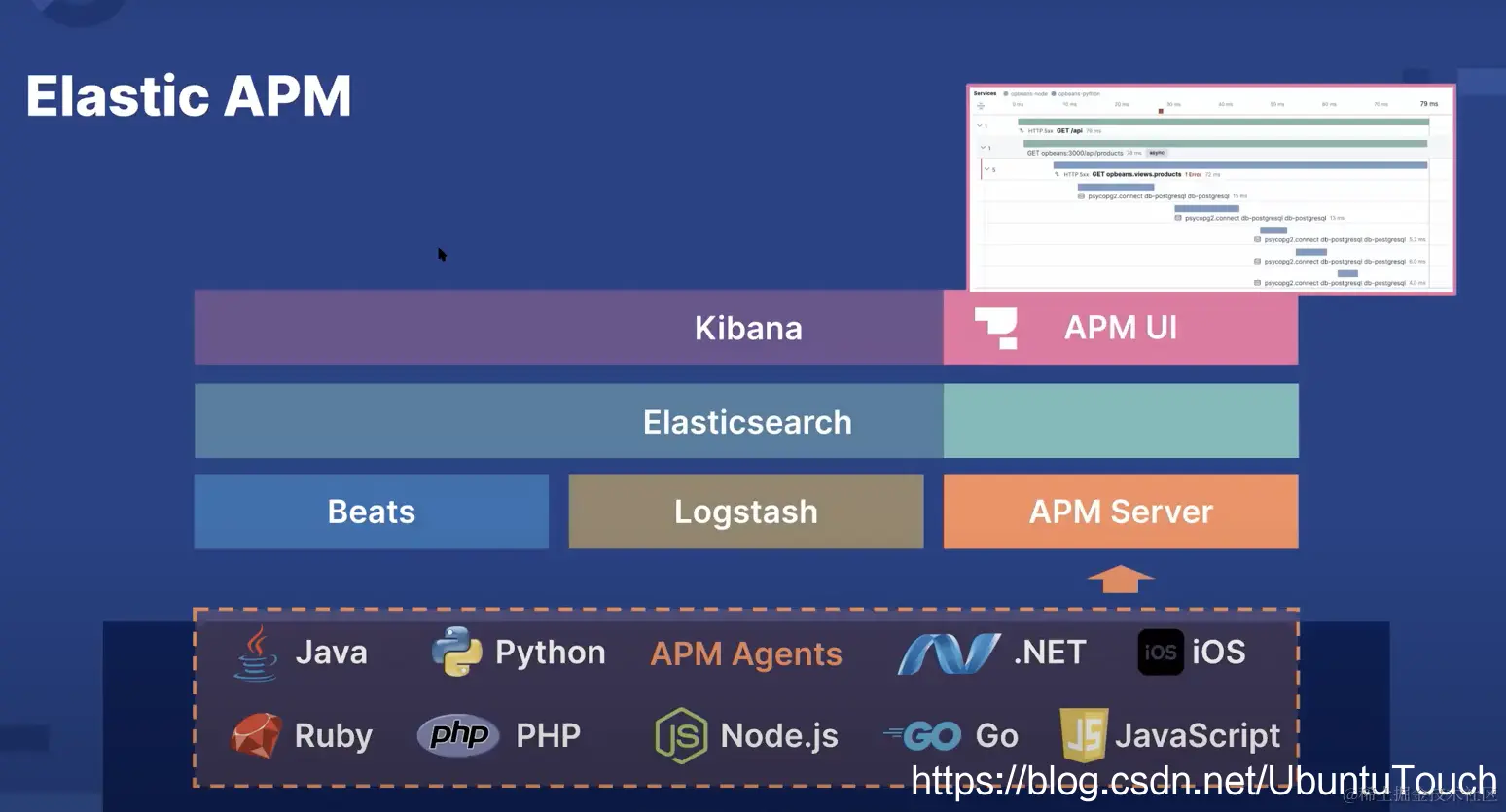 我们可以使用 APM agents 来收集各类应用的性能指标。目前 Elastic 针对各类语言及架构提供相应的 APM agents 来收集收集数据。