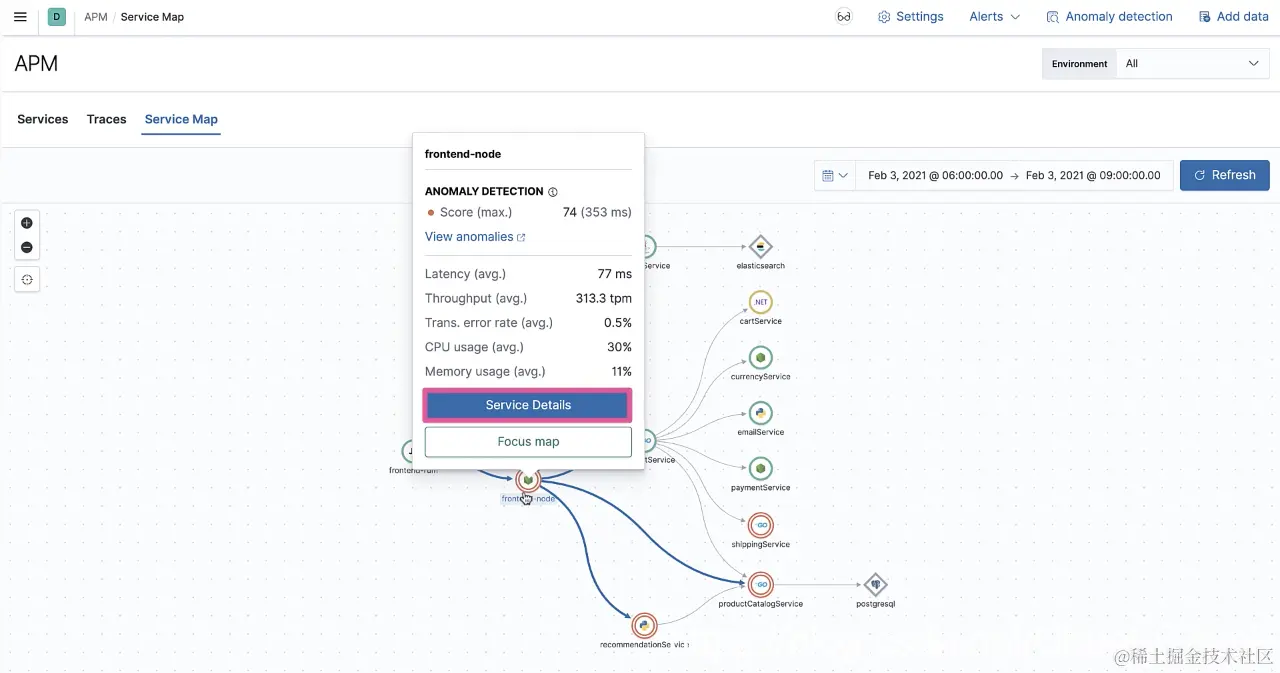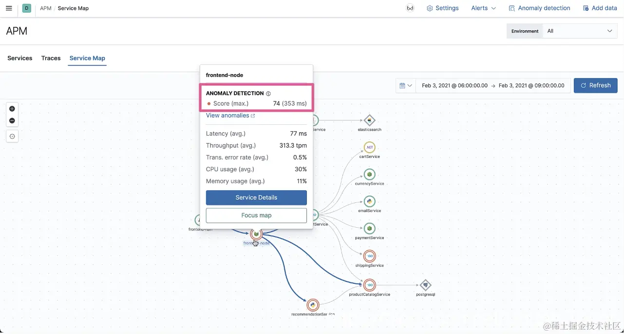 在这篇文章中,我们介绍了如何使用 Elastic APM 的分布式追踪来查看一些慢的服务,从而让开发者在开发的阶段就可以发现问题的所在,并优化自己的系统。另外 APM 应用中的 Service Map 提供了一个简便及快速的查看各个服务之前的关系。Service Map 集成了机器学习。它可以对我们的服务进行异常检测,从而评估服务的质量,为优化整个系统提供方向。