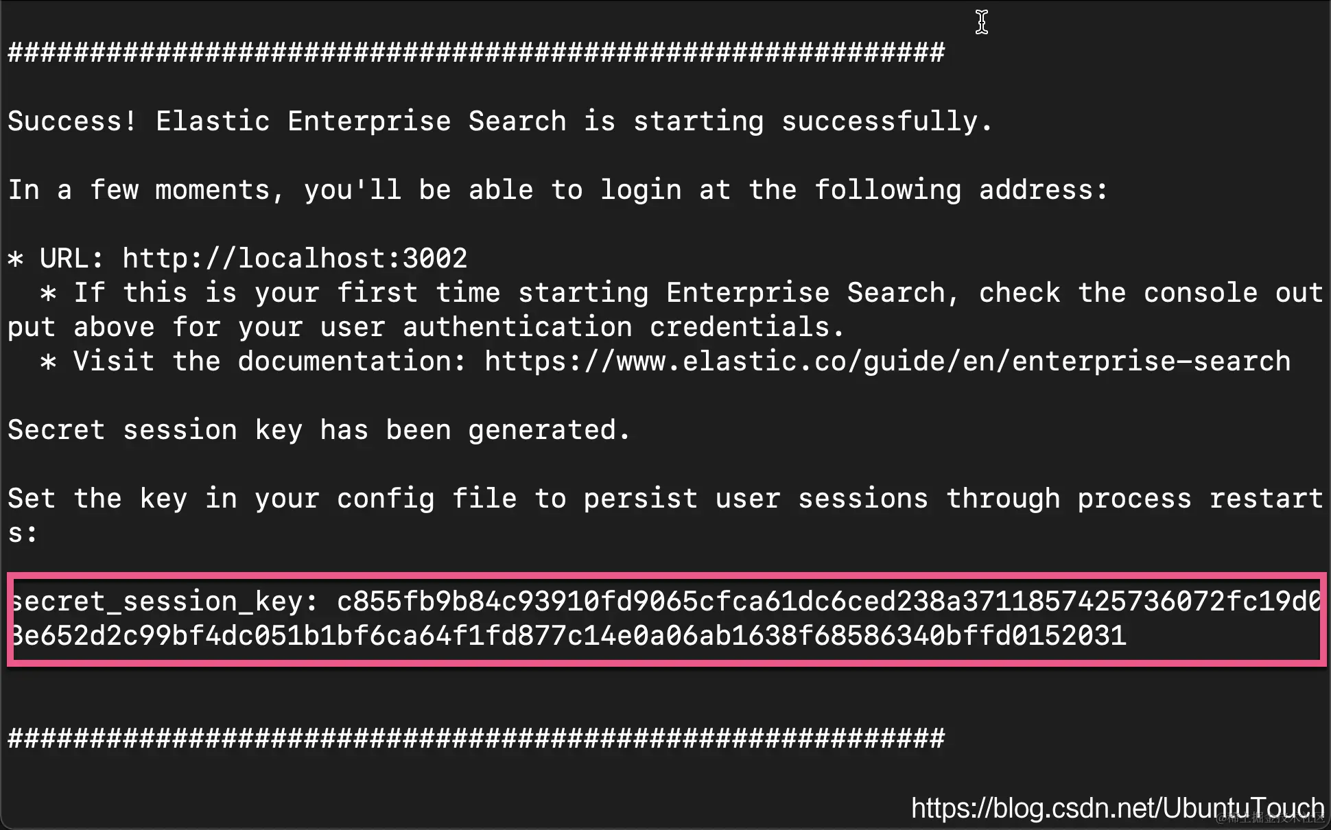 为了能够保存 session,我们可以把上面的 secret_session_key 添加到 config/enterprise-search.yml 中去。添加完毕后,我们重新启动: