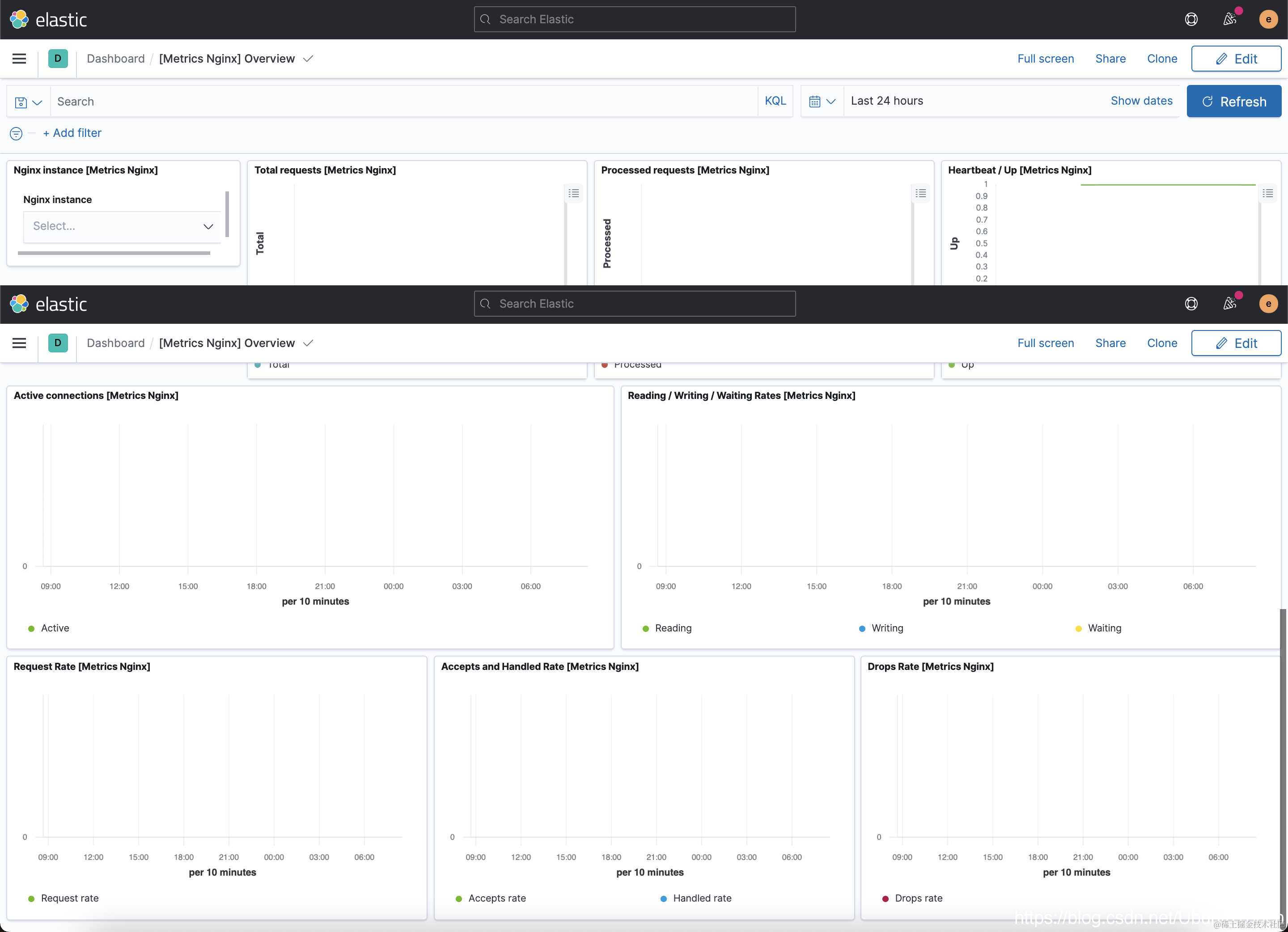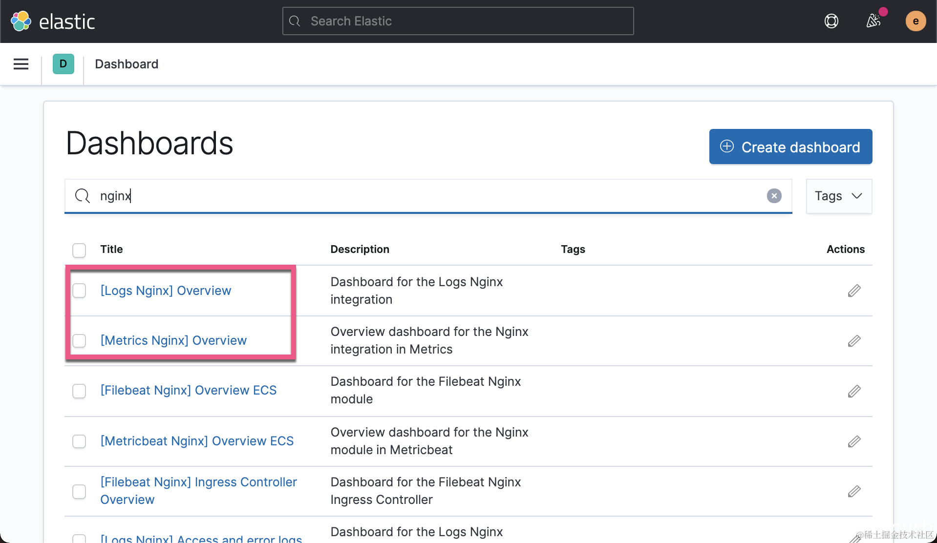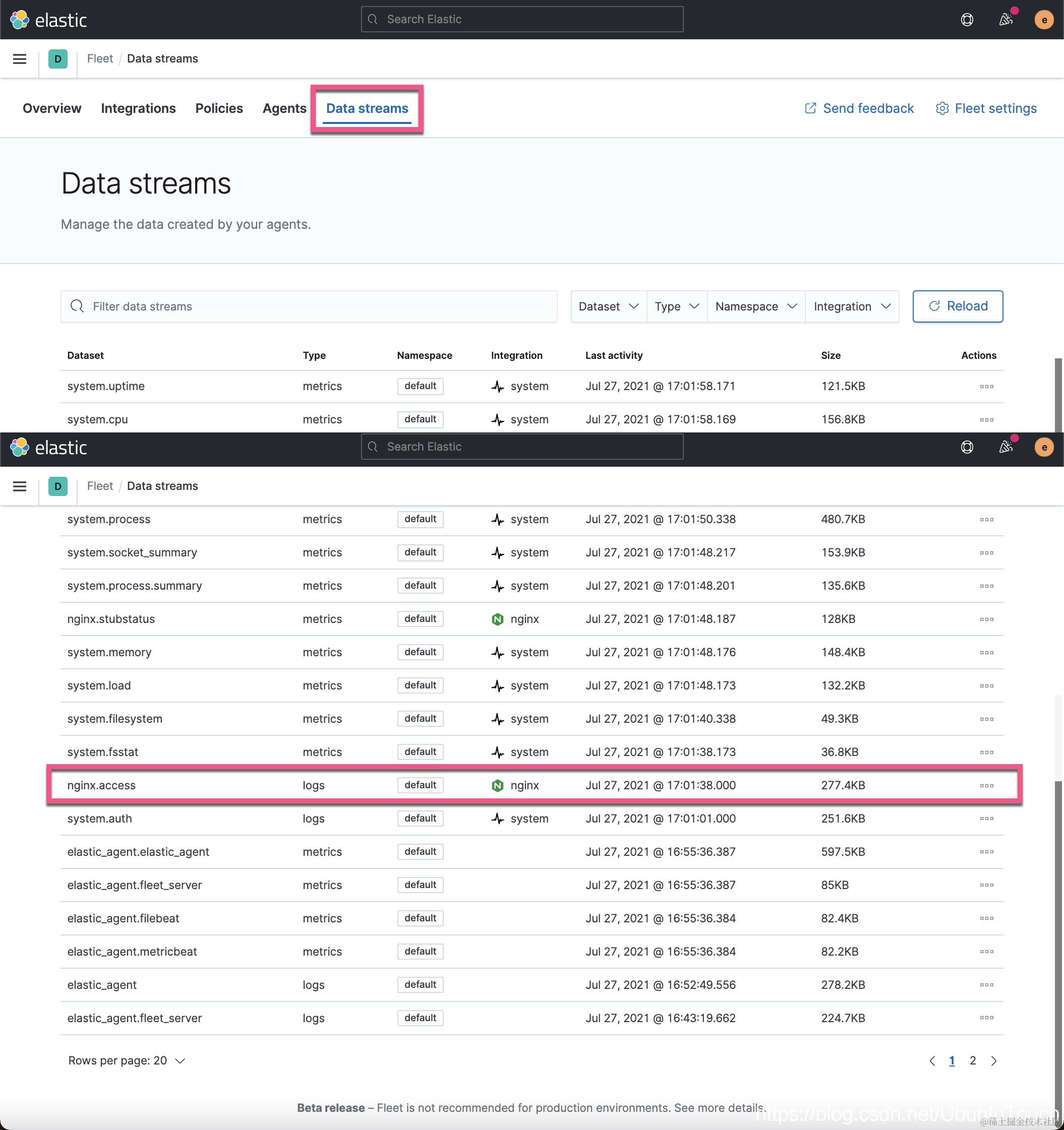 也许你已经看出来了。在以前,如果我们使用 Filebeat 来收集日志的话,我们可以看到 Filebeat 的日志。现在它变成了 [Logs Nginx] Overview:
