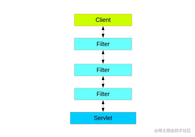 Web 层(用于 UI 和 HTTP 后端)中的 Spring Security 是基于 Servlet 的Filters,所以先看看Filters一般的作用是有帮助的。下图显示了单个 HTTP 请求的处理程序的典型分层。