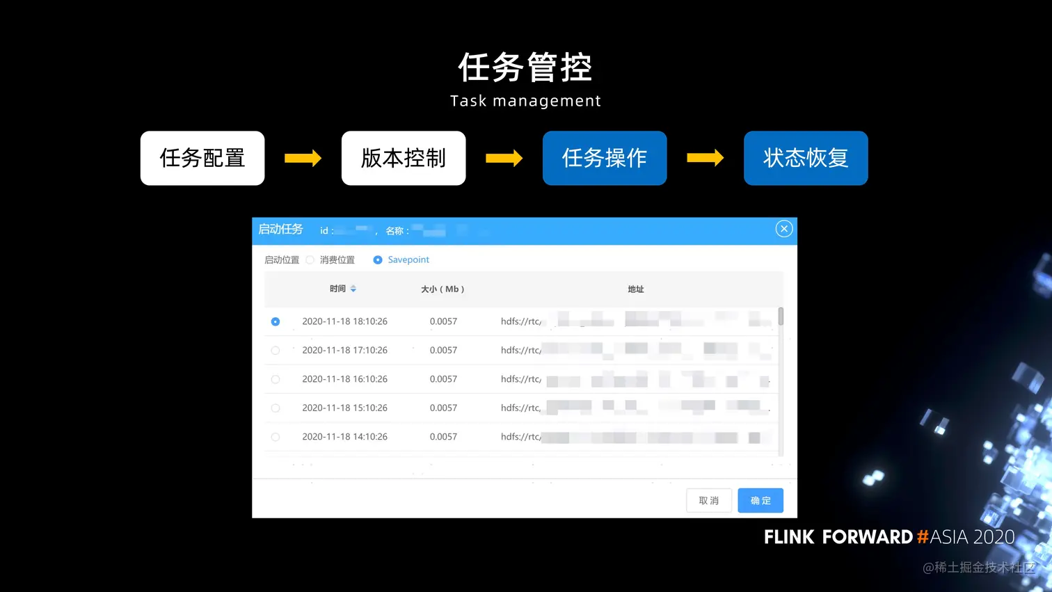 任务恢复方面,用户可以选择从 Savepoint 启动已停止的 Flink 任务,便于快速恢复历史状态。