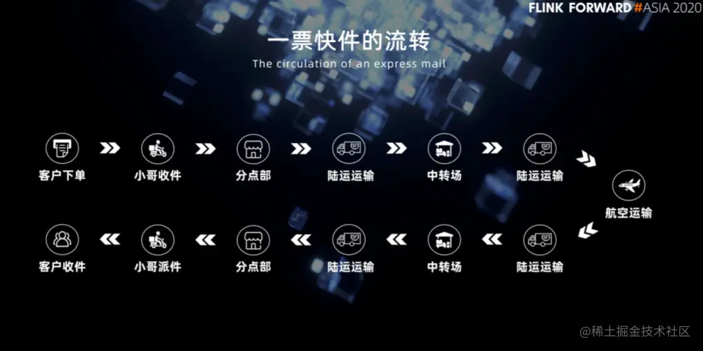 顺丰是国内领先的快递物流综合服务商,经过多年的发展,顺丰使用大数据技术支持高质量的物流服务。以下是一票快件的流转过程,可以看到从客户下单到最终客户收件的整个过程是非常长的,其中涉及的一些处理逻辑也比较复杂。为了应对复杂业务的挑战,顺丰进行了数据仓库的探索。