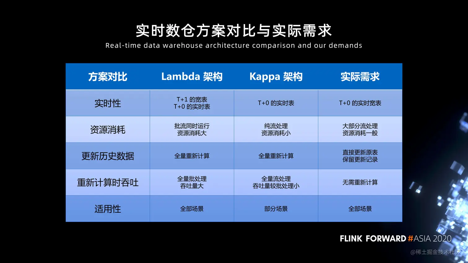 另外,这个离线 T+1 调度产出的宽表,需要聚合 45 天内多个数据源的全量数据,不管是 Lambda 架构还是 Kappa 架构,都需要对数据进行全量聚合,如果能够直接更新宽表,就可以避免全量重新计算,大大降低资源消耗和延时。