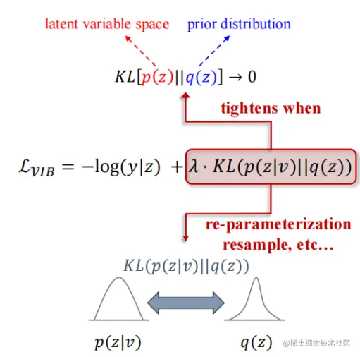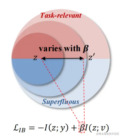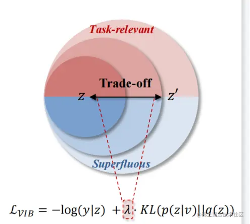 它要求信息瓶颈的编码过程不允许有判别性信息的损失,也就是说 v 经过信息瓶颈到达 z 之后,只允许消除冗余信息,当然这是一个比较理想化的要求(如上图)。