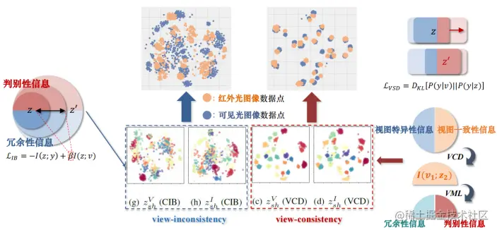 我们再来看下面这张图,下标的 sh 代表他们来自于 shared branch,他们来自于多模态的分支,上标“V”“I”依然代表了可见光以及红外光的数据点。